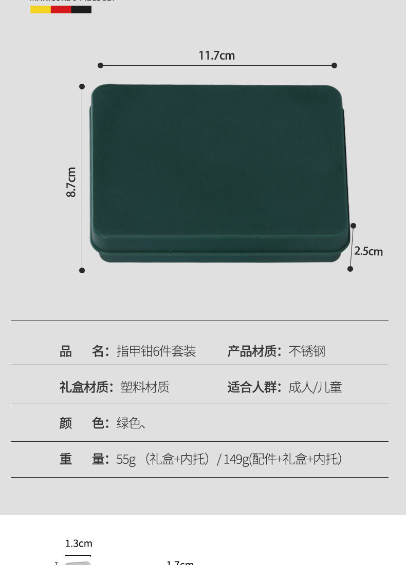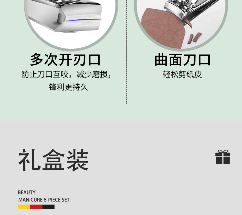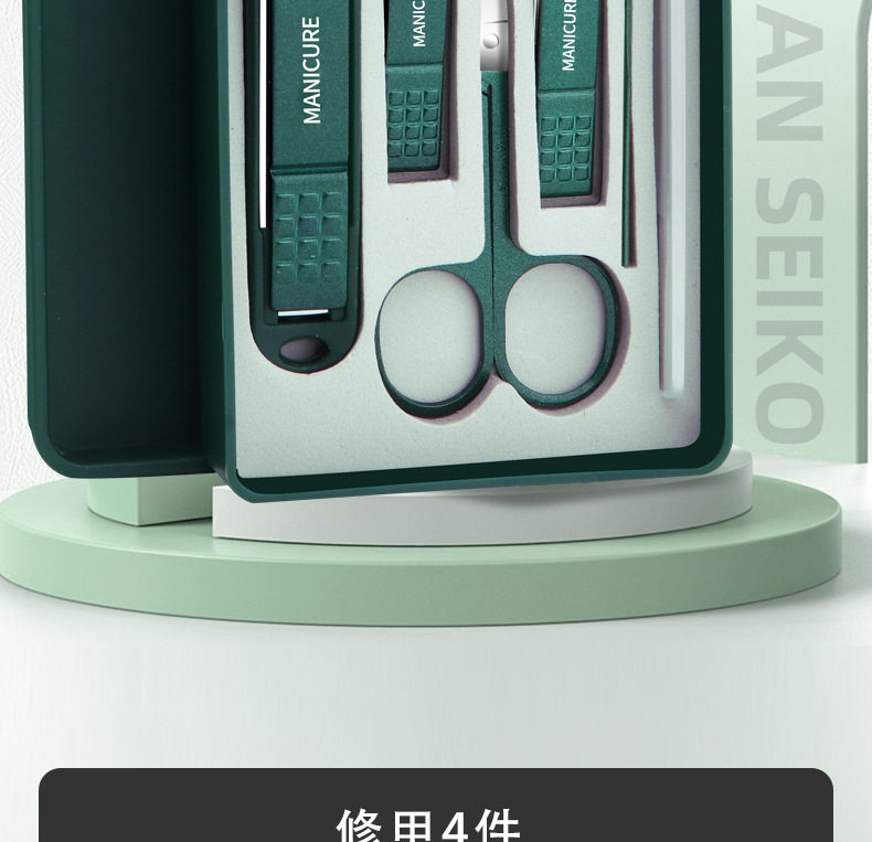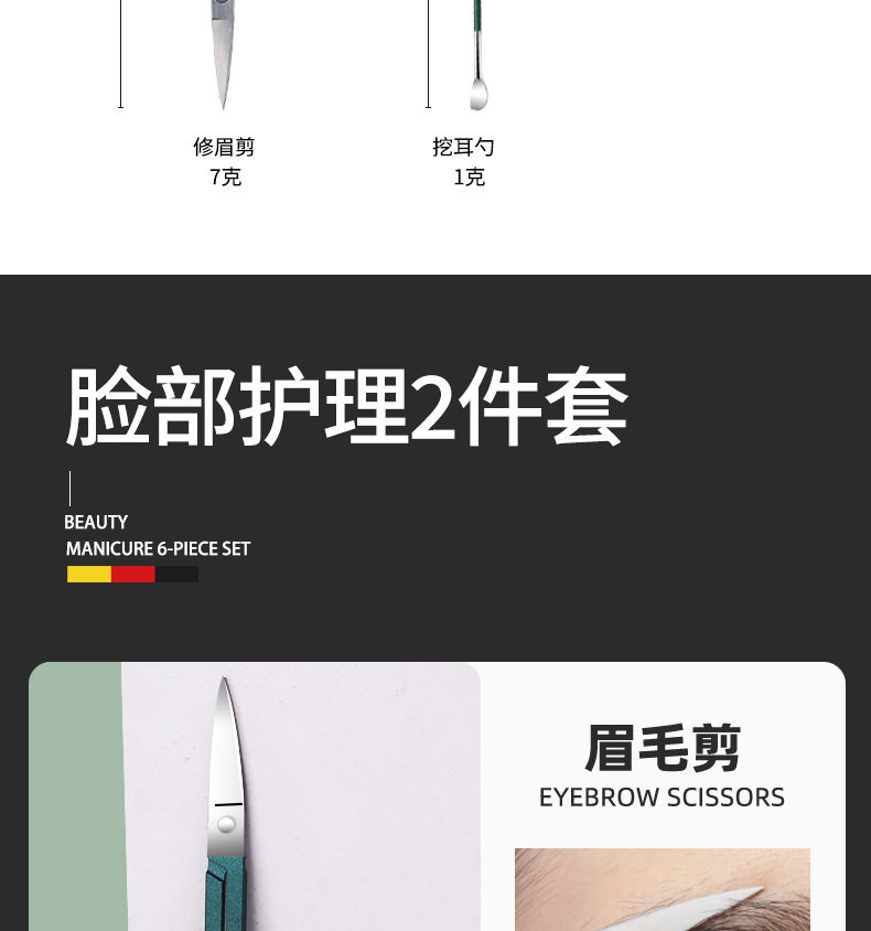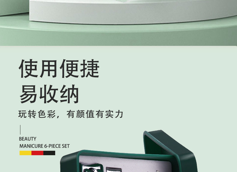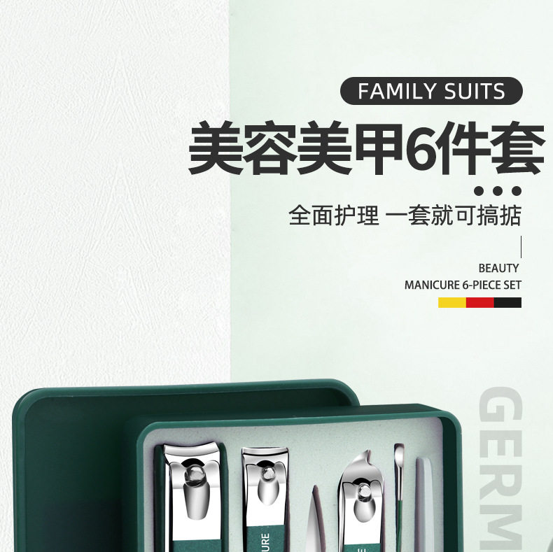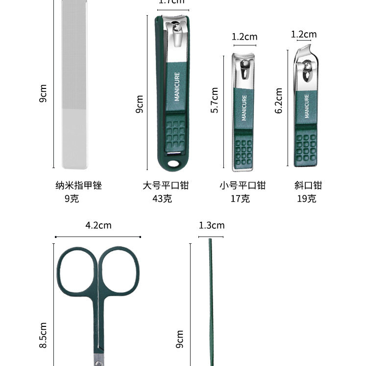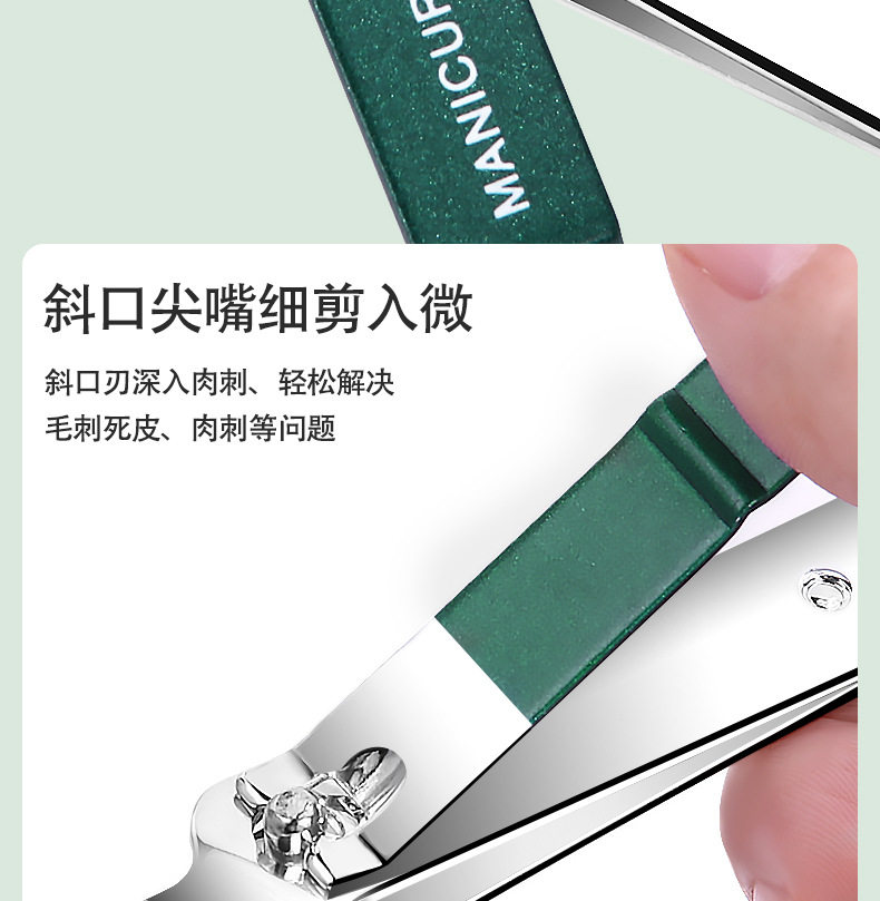 New carbon steel dark green 6-piece nail clippers suit nail tools portable large anti-splash nail clippers suit