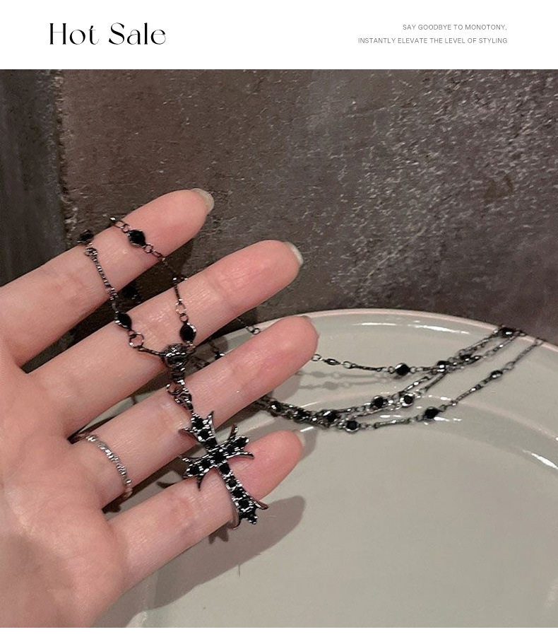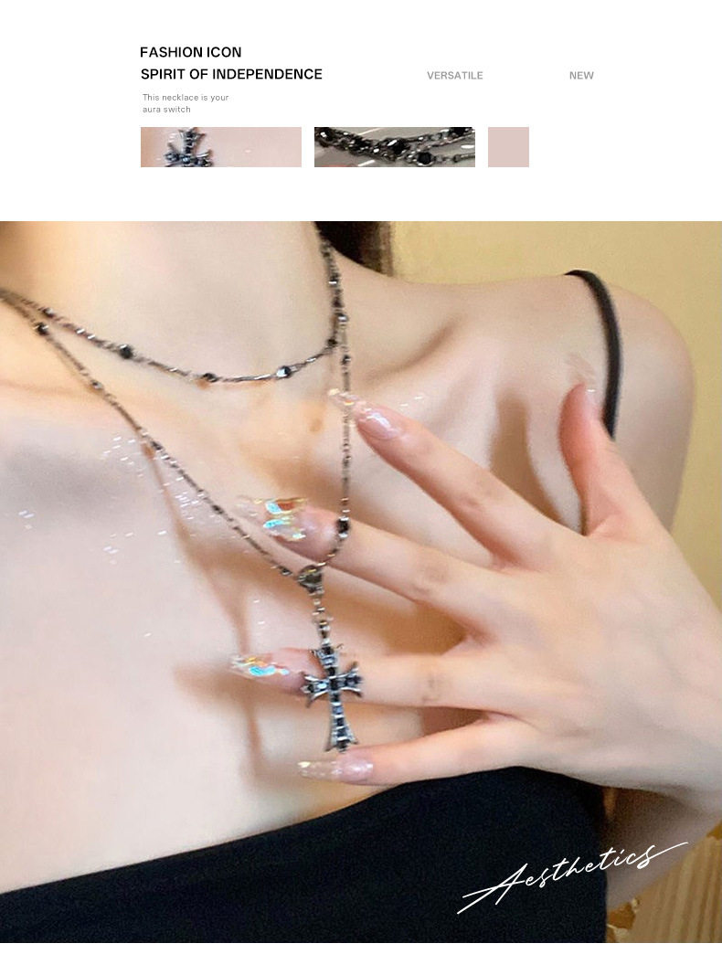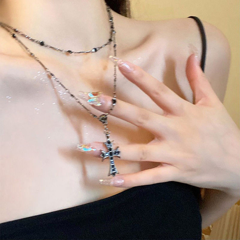 Diablo Cross Necklace Light Luxury Niche Accessories Women's High-End Sense Overlapping Sweet Cool Spice Girl Style Necklace Chain Collarbone Chain