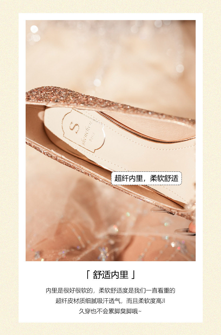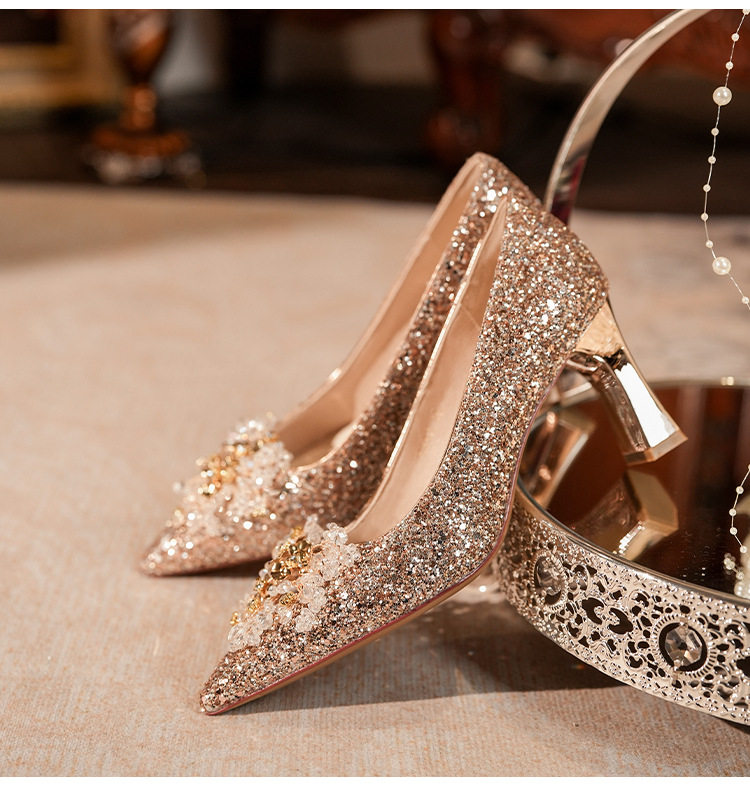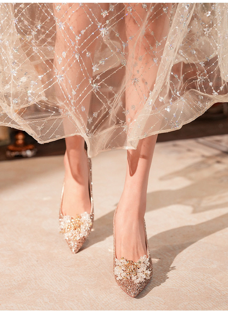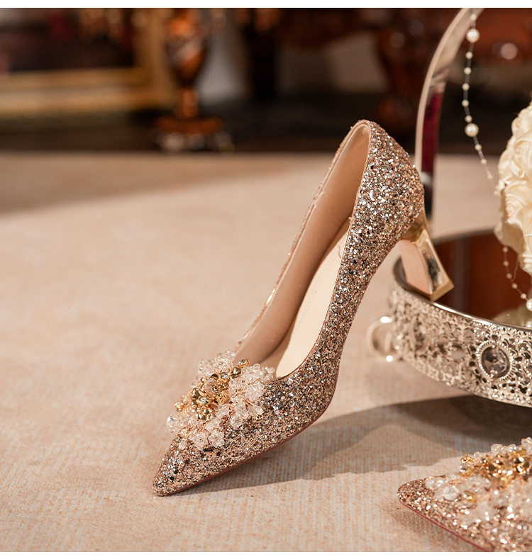 C755-12 wedding shoes women's bridal shoes sequined wedding dress two-way crystal shoes 2024 new high heel plus size 32-43