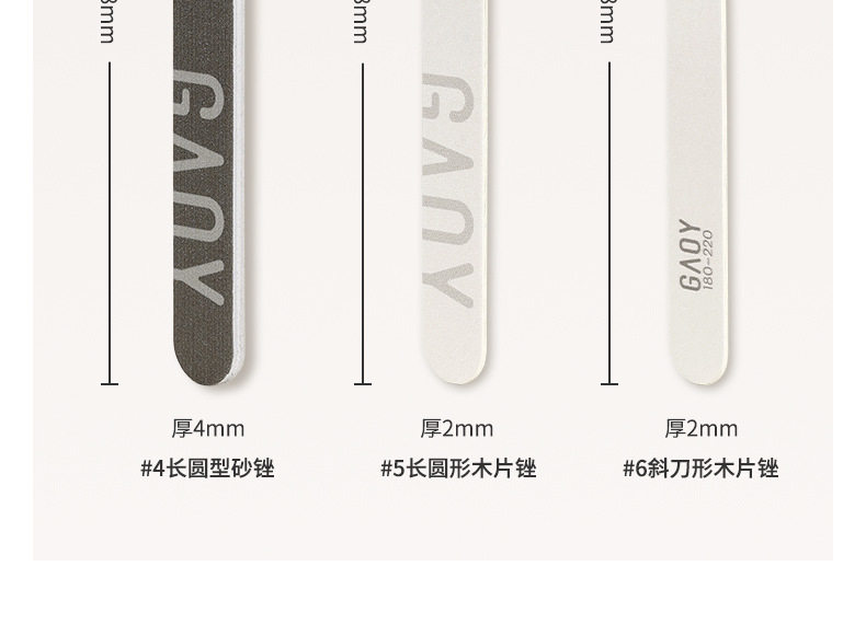 | Color classification | Baseball sponge file,Semi-curved sponge file,Baseball sand file,Long round sand file,Oval wood chip file,Bevel knife-shaped wood chip file |