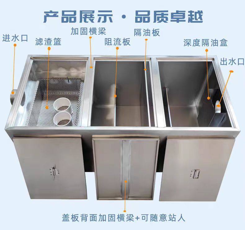 Thickened Stainless Steel Underground Oil Separator Kitchen Catering Ditch Three-Stage Sewage Filtration Sedimentation Oil-Water Separator