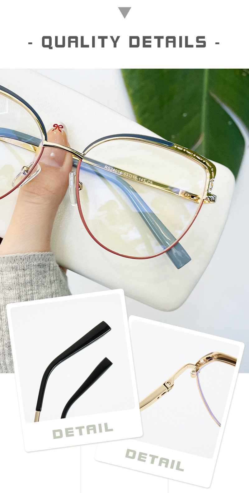 | Glasses style | Butterfly frame |
