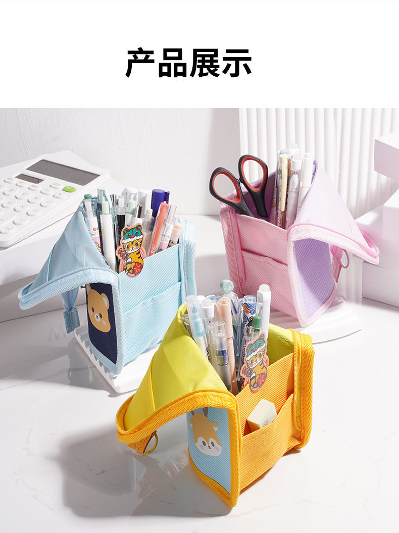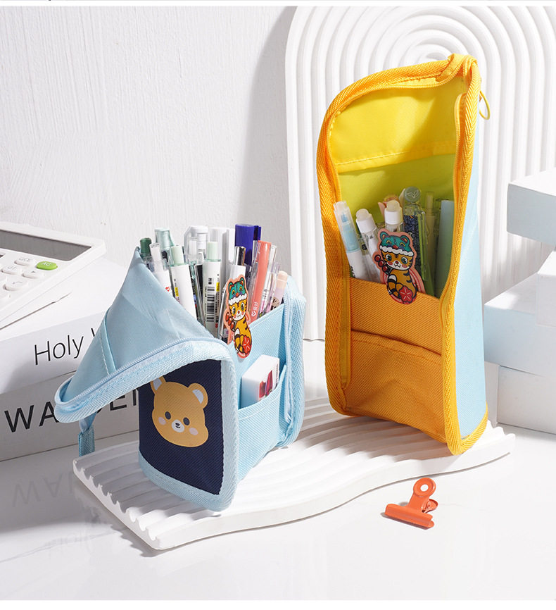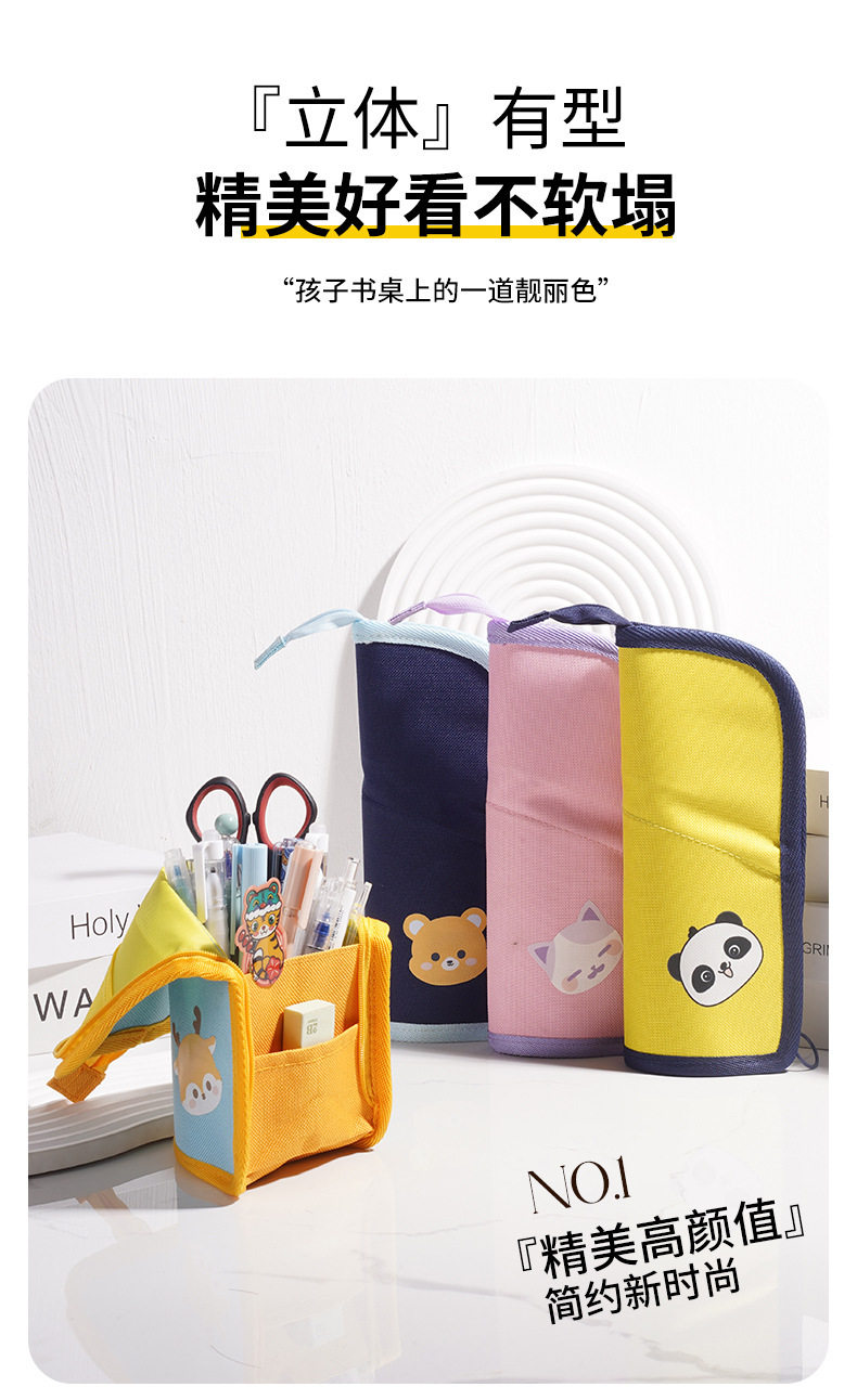 Creative cartoon pencil case three-dimensional pen holder elementary school student fabric convenient pencil bag multi-functional high-looking stationery bag