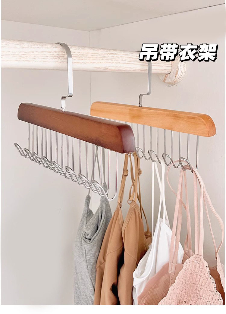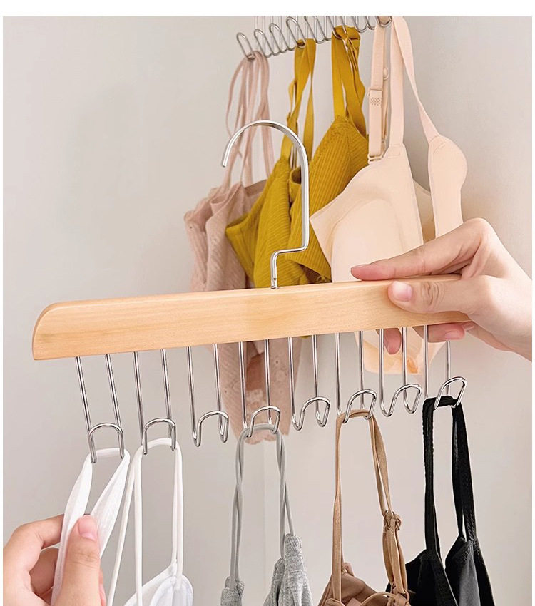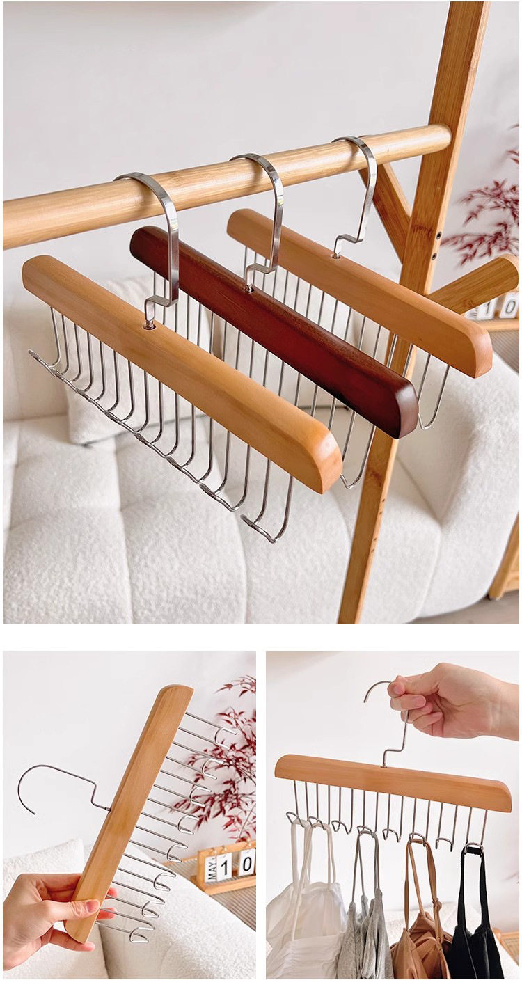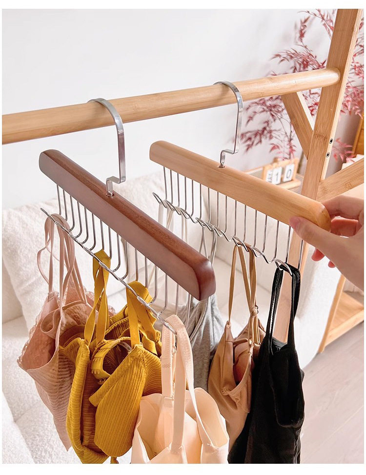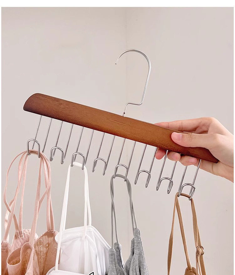 8-hook wooden sling hanger underwear vest tie storage hook student dormitory solid wood wave drying hanger