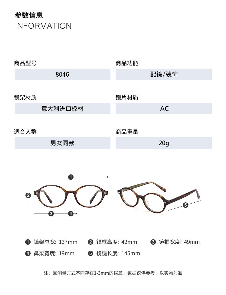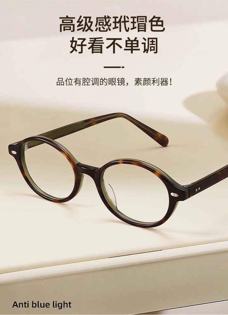 Nerd myopia glasses frame retro oval small frame leopard print hawksbill plain glasses frame can be equipped with degrees