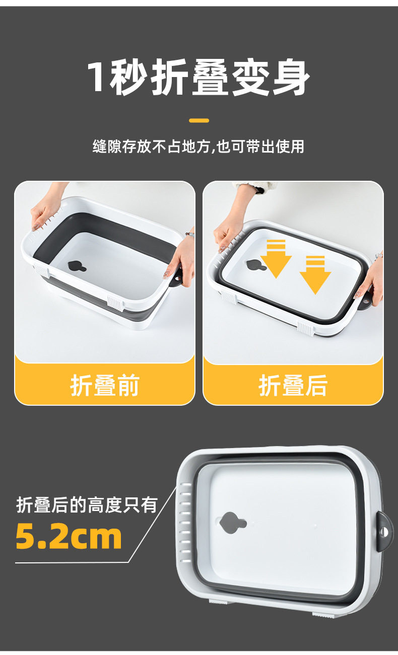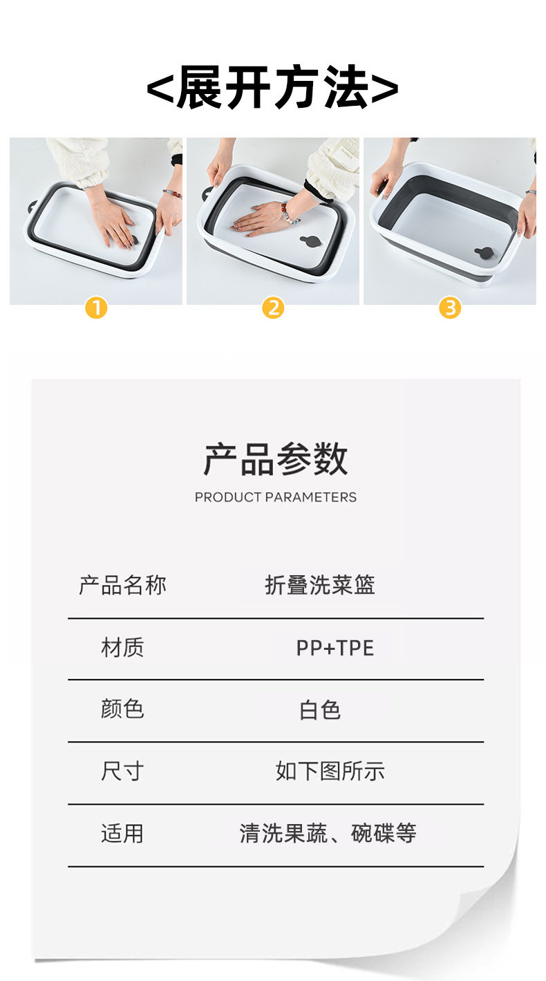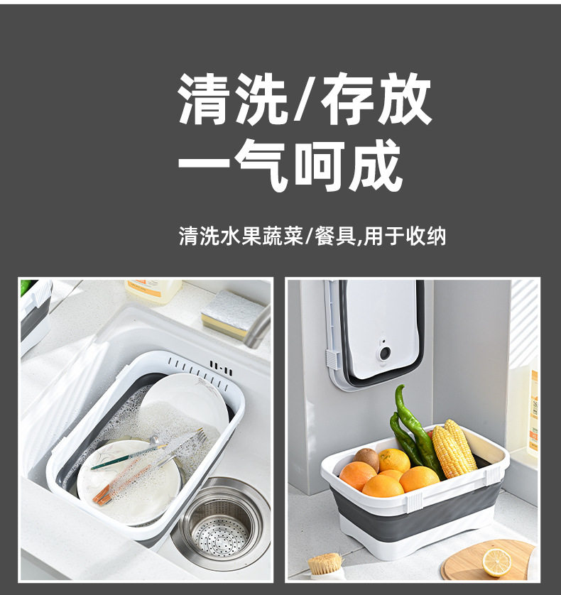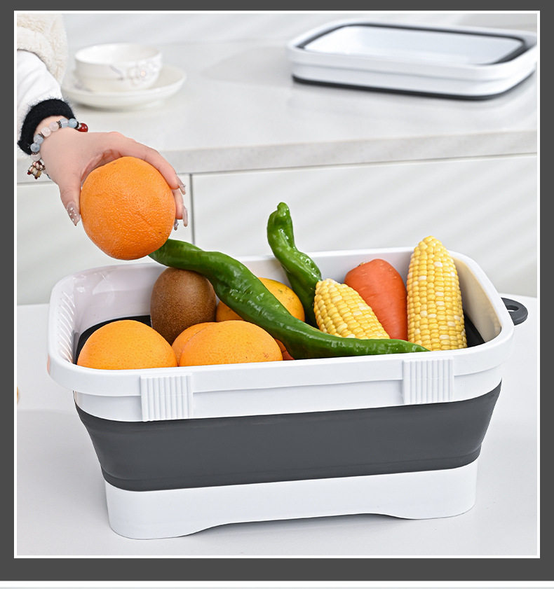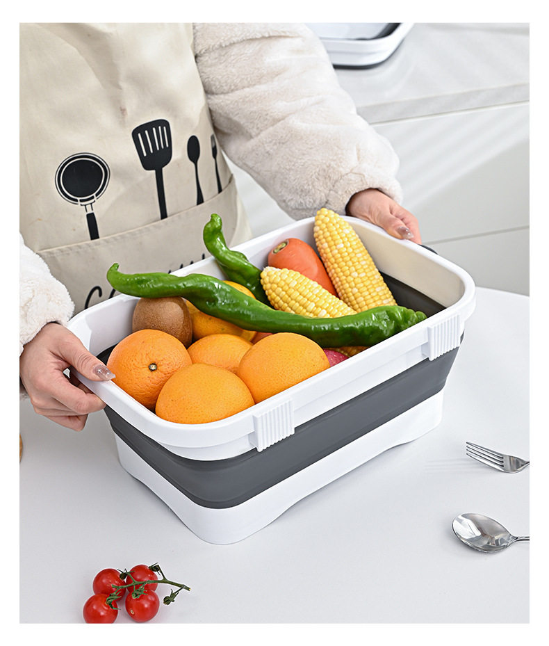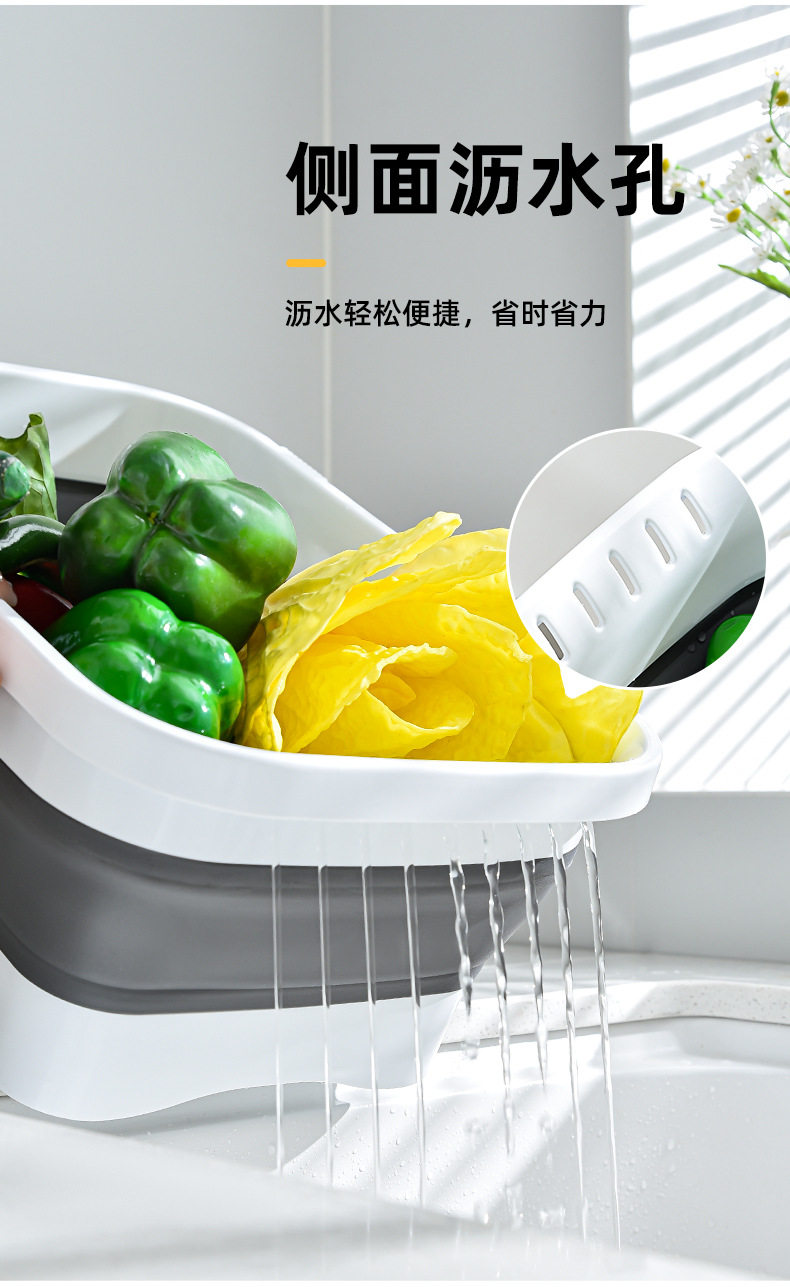 Kitchen folding vegetable washing basin fruit and vegetable draining basket retractable vegetable basket household drainage storage tray