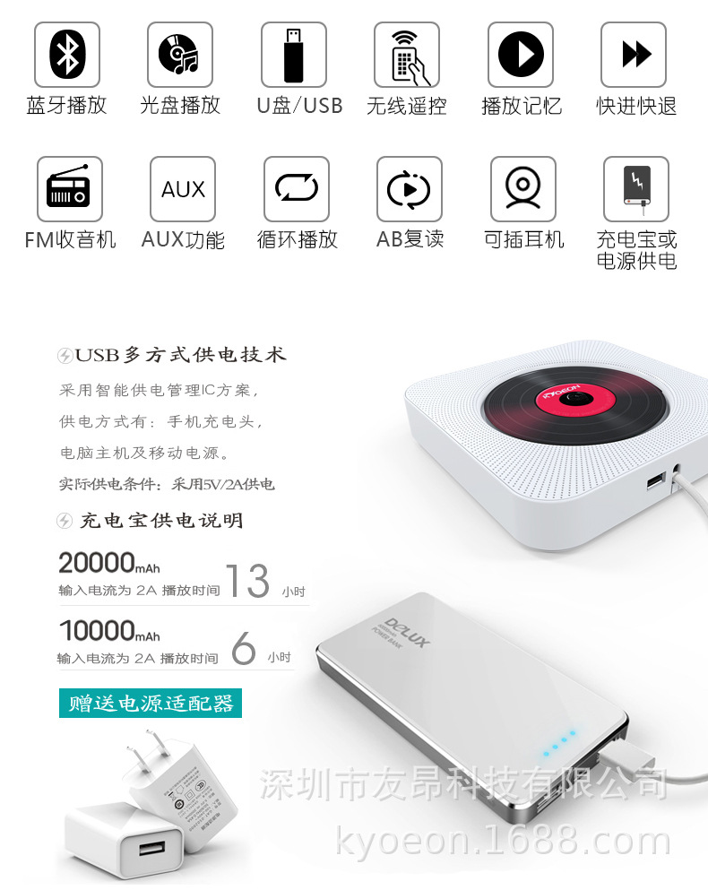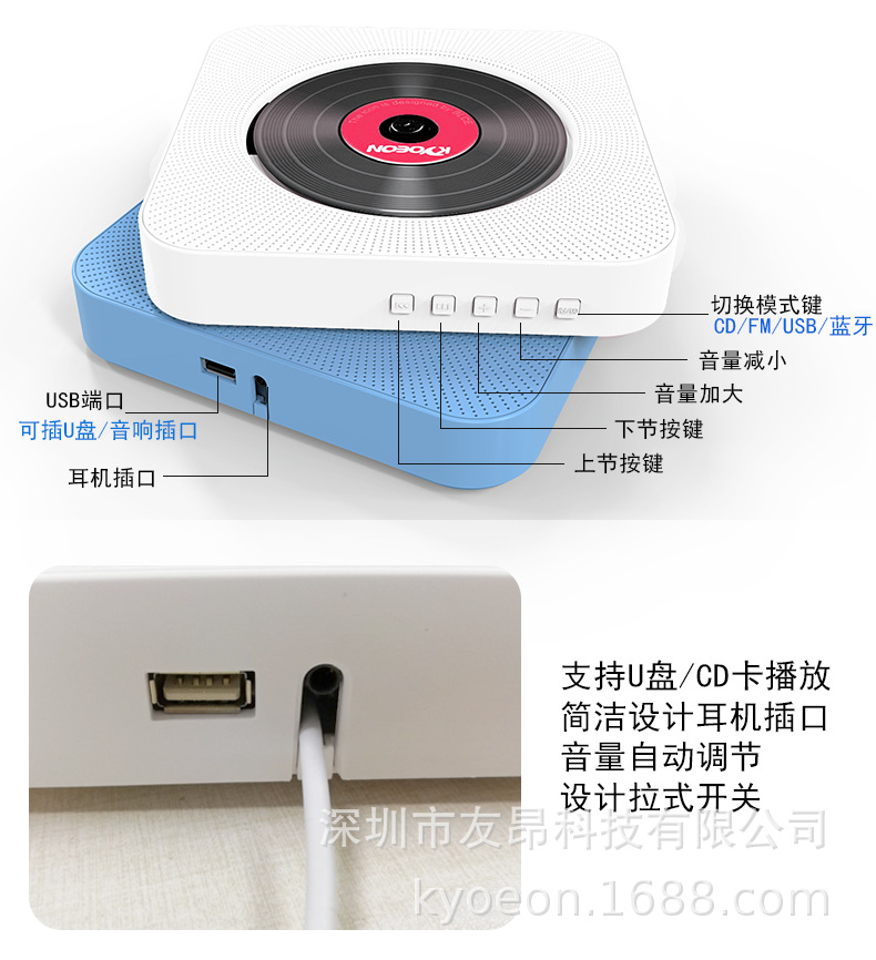 In stock direct sales wall-mounted Bluetooth CD player playing machine home DVD player learning portable CD player Walkman