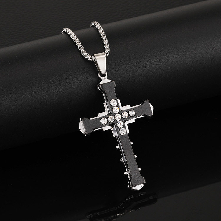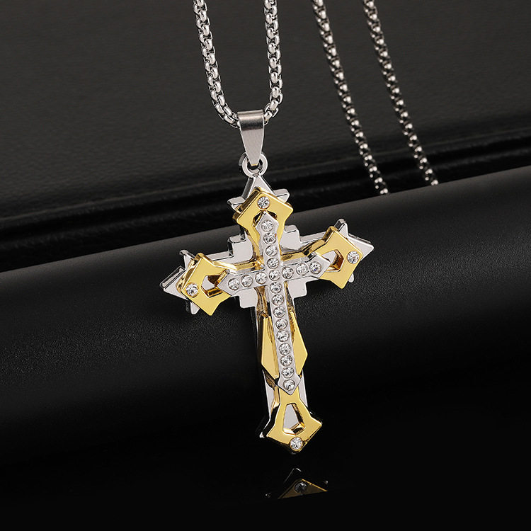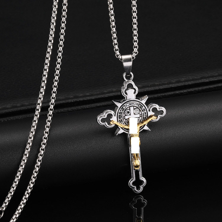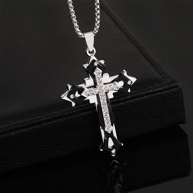 2026 New European and American Style Cross Necklace for Men, Simple Long Gothic Retro Stainless Steel Non-Fading Pendant for Women