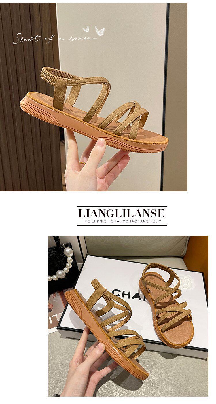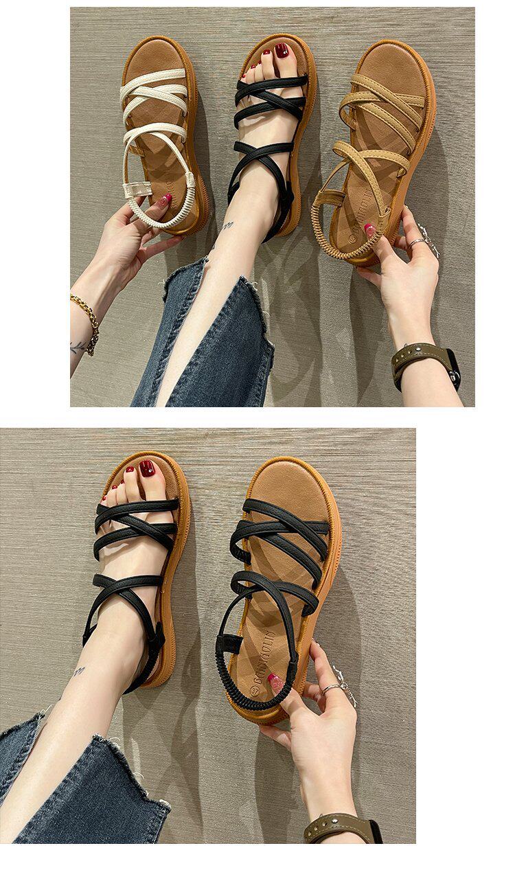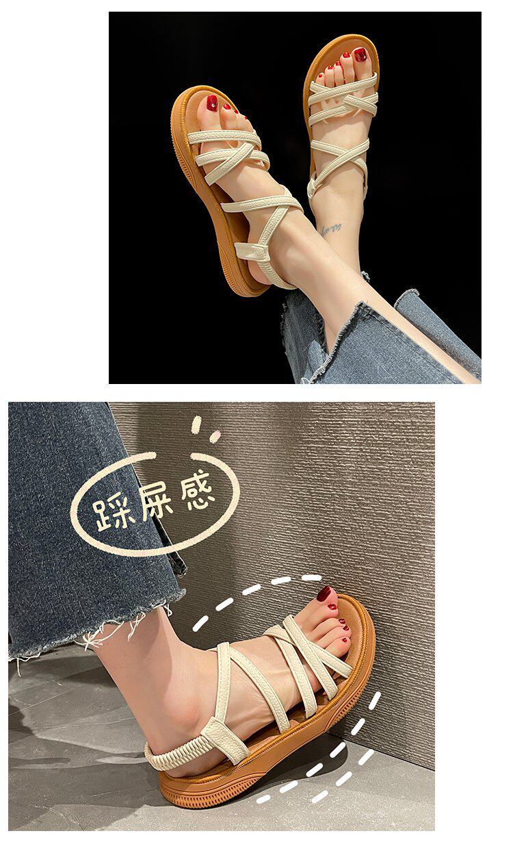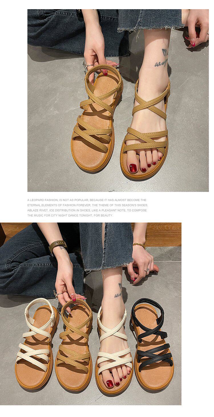 Sandals for Women 2024 New Summer Versatile Flats Fairy Style Student Casual Retro Roman Popular Sandals Ins Trend
