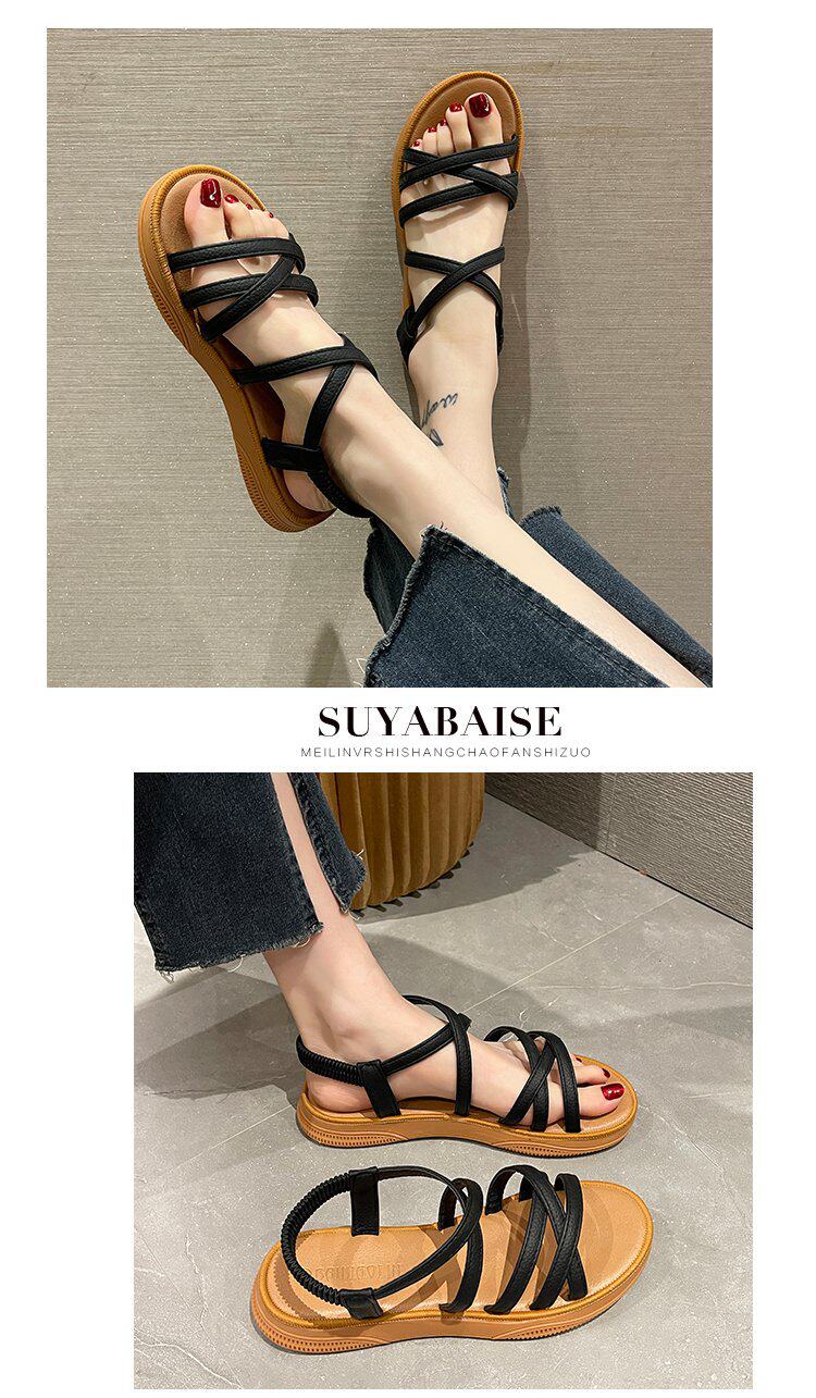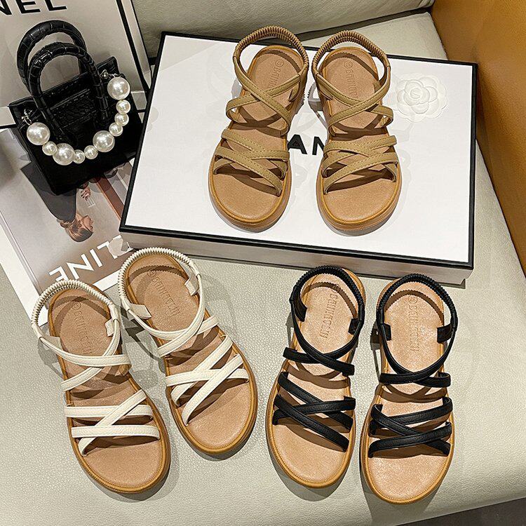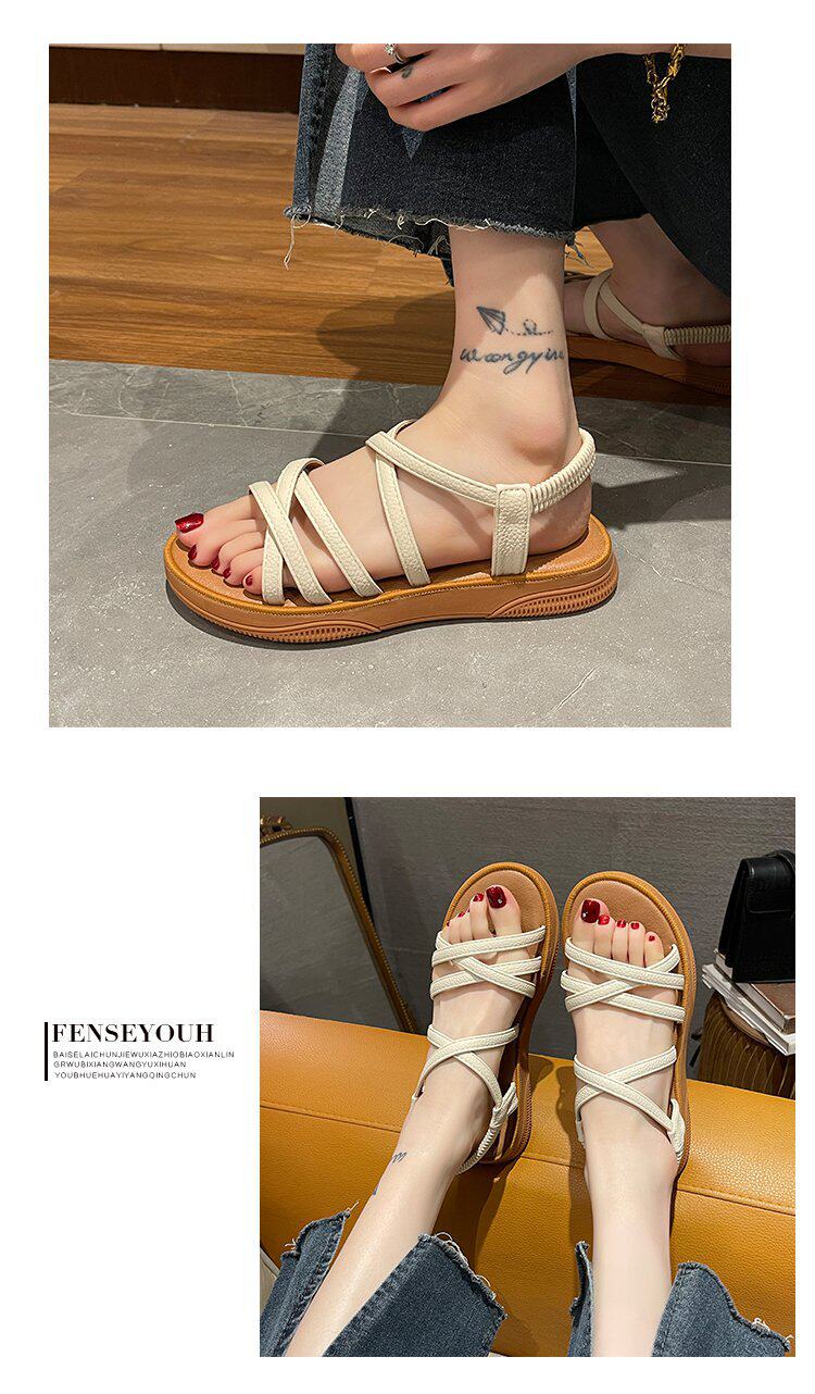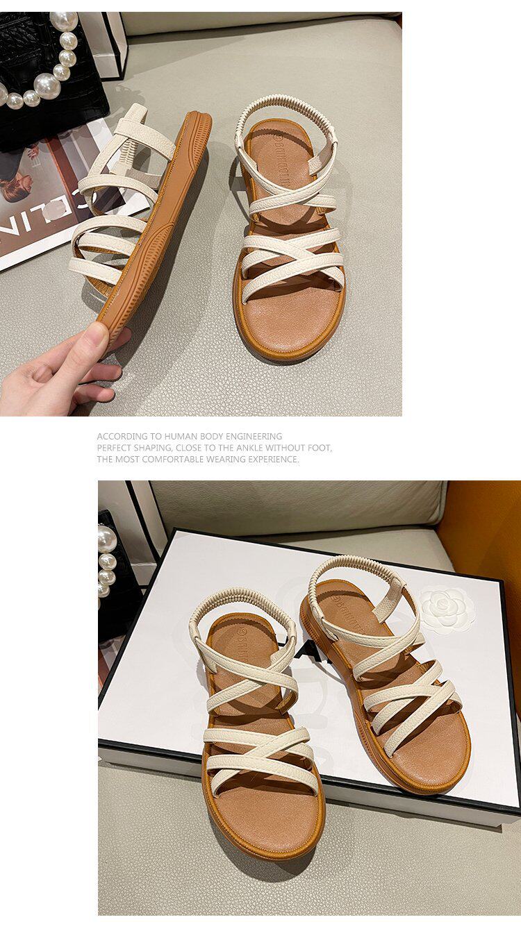 Sandals for Women 2024 New Summer Versatile Flats Fairy Style Student Casual Retro Roman Popular Sandals Ins Trend
