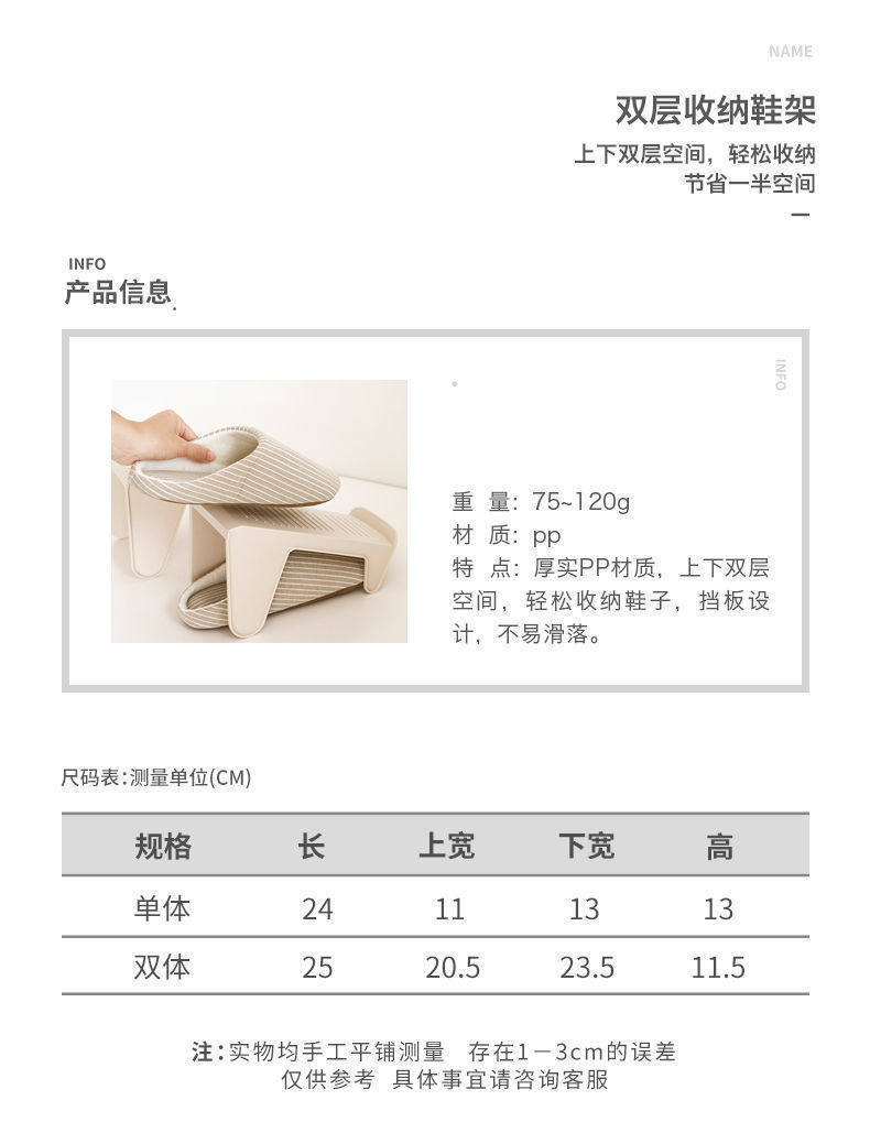 Storage shoe rack double-layer plastic double-layer shoe bracket cabinet integrated shoe holder organizing shoes and slippers storage rack