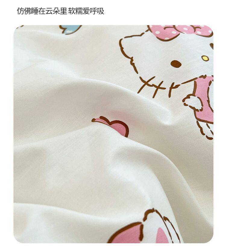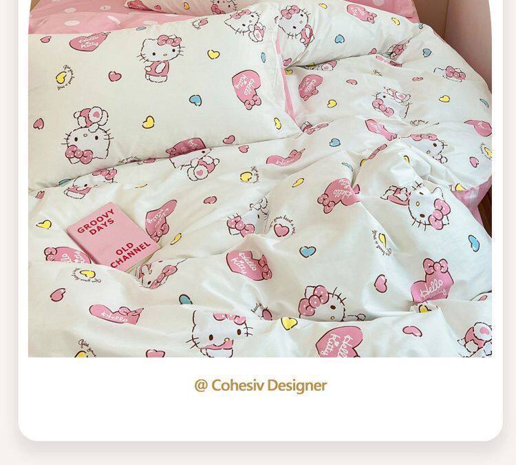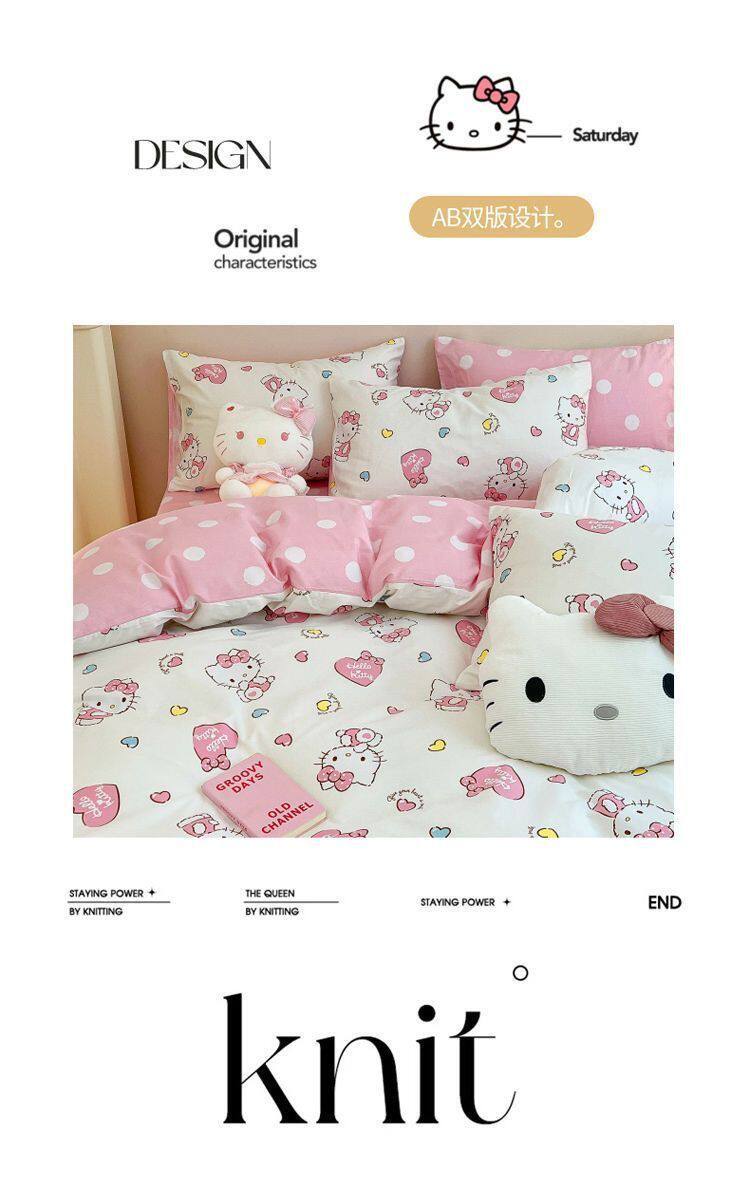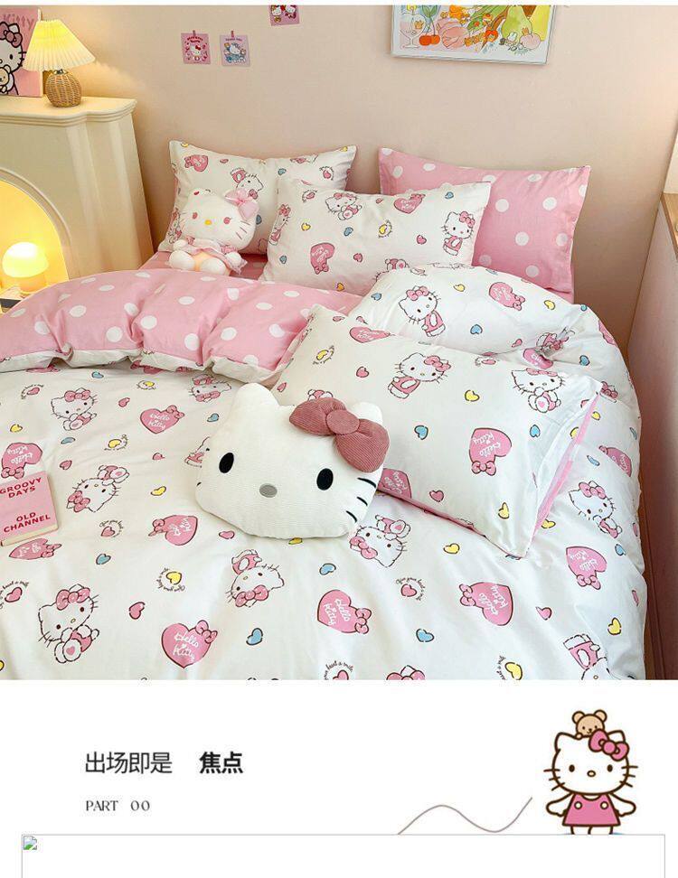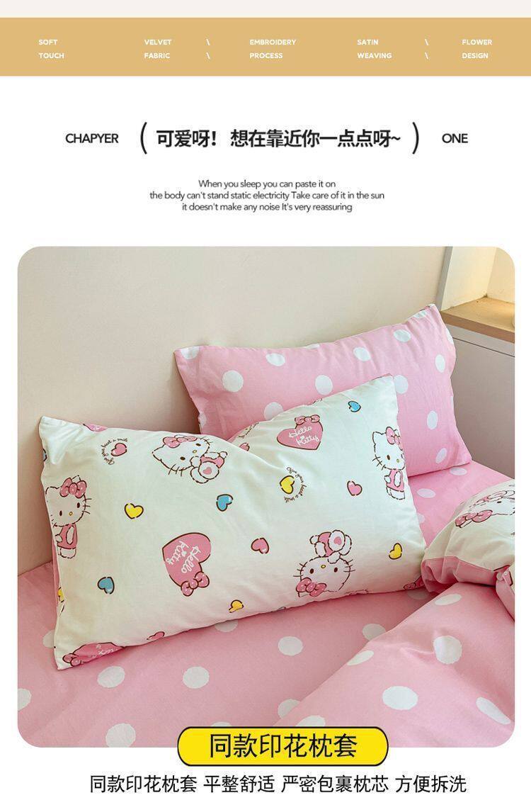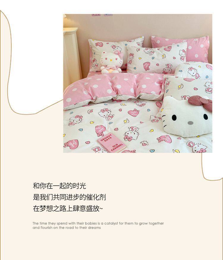 Ins Cartoon Cat Girl Heart Pink Four-Piece Set Cute Bedding Plaid Bed Sheets Dormitory 3-Piece Quilt Cover