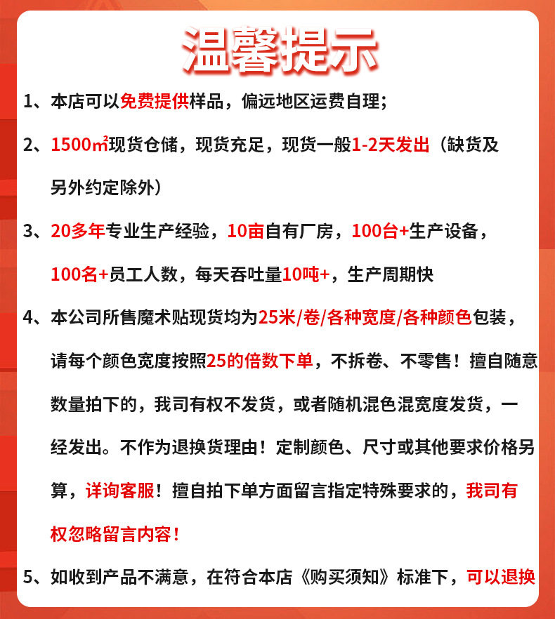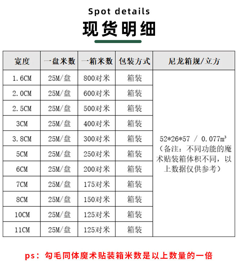 | Specification model | Flame retardant with black *2cm rough surface,Flame retardant with black *2.5cm hook surface,Flame retardant with black *2.5cm rough surface,Flame retardant with black *3cm hook surface,Flame retardant with black *3cm rough surface,Flame retardant with black *5cm hook surface,Flame retardant with black *5cm rough surface,Waterproof velcro black *11cm hook surface,Waterproof velcro black *11cm rough surface,Waterproof velcro white*11cm hook surface,Waterproof velcro white*11cm rough surface,Waterproof velcro black *14cm hook surface,Waterproof velcro black *14cm rough surface,Waterproof velcro white*14cm hook surface,Waterproof velcro white*14cm rough surface,Black hook hair body*2cm, shoot at 25 times,Black hook hair body*2.5cm, shoot at 25 times,Black hook hair body*3.8cm, shoot at 25 times,Black hook hair same body *5cm, shoot at 25 times |