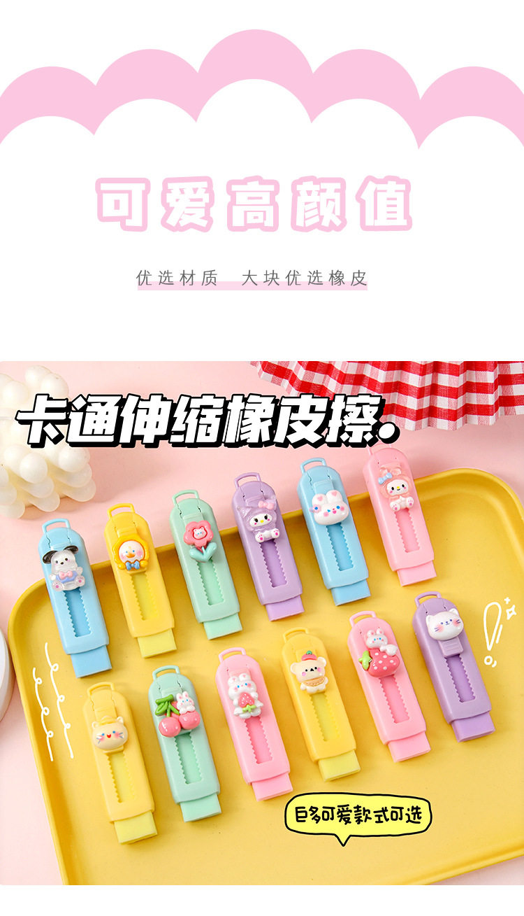Cute Cartoon Push-Pull Eraser Clean Student High-Value Stationery Prizes Children's Creative Eraser Wholesale
