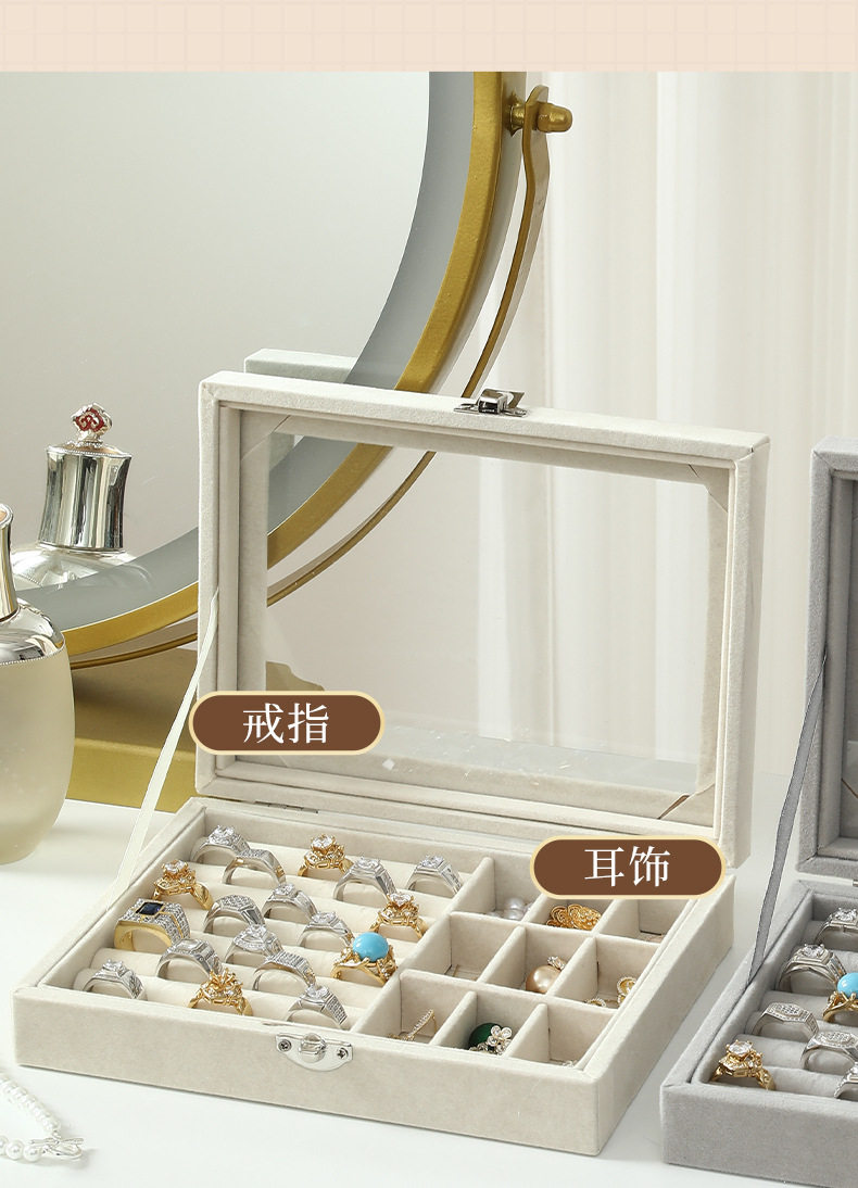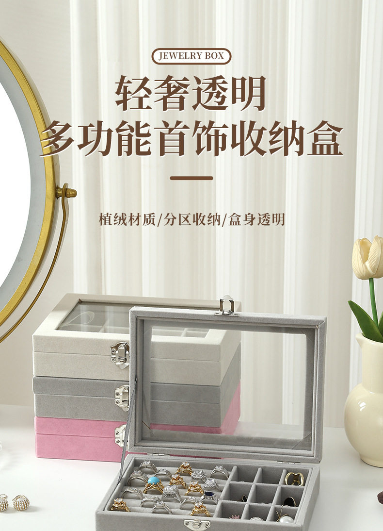 Cross-Border Popular High-End Storage Jewelry Box Velvet Student Desktop Jewelry Box Ring Necklace Earrings Storage Box