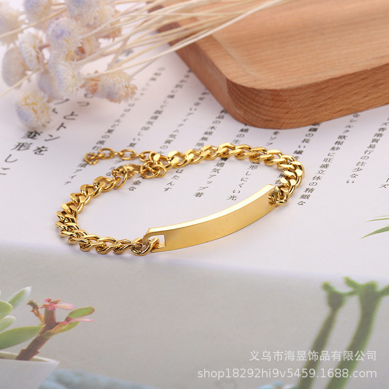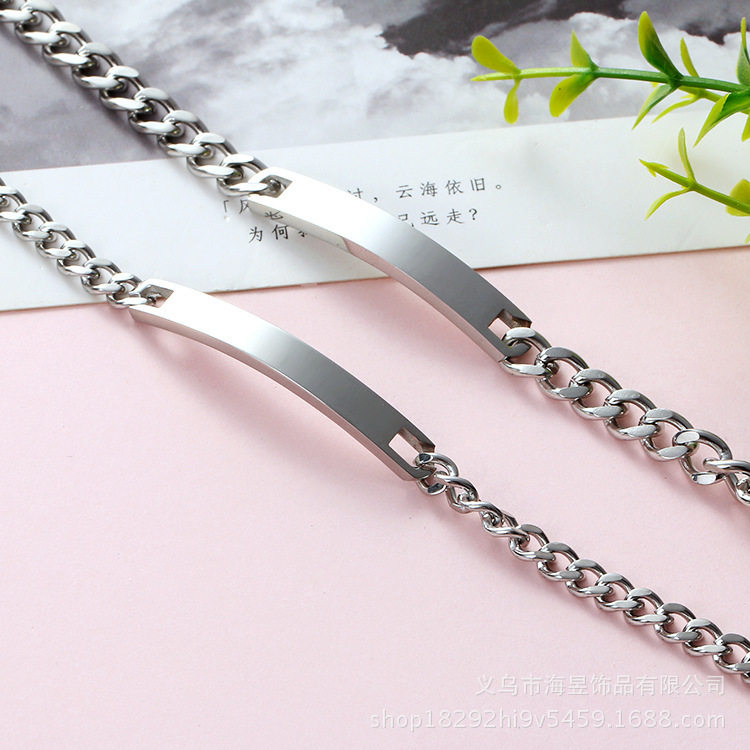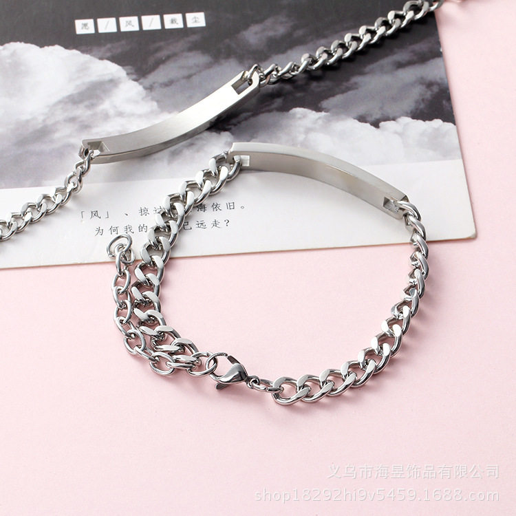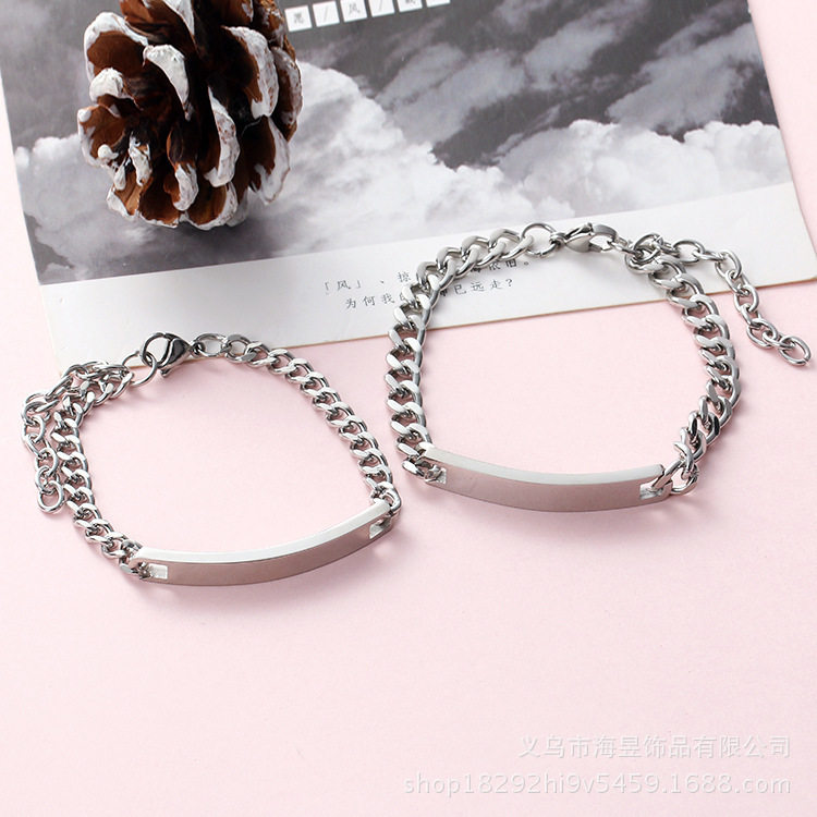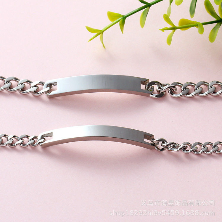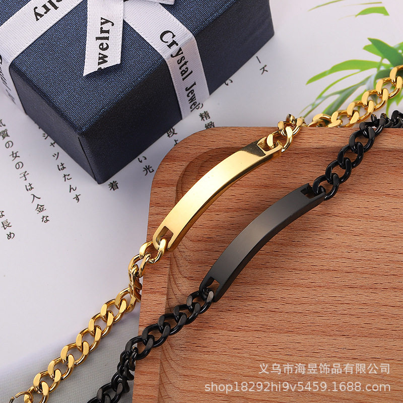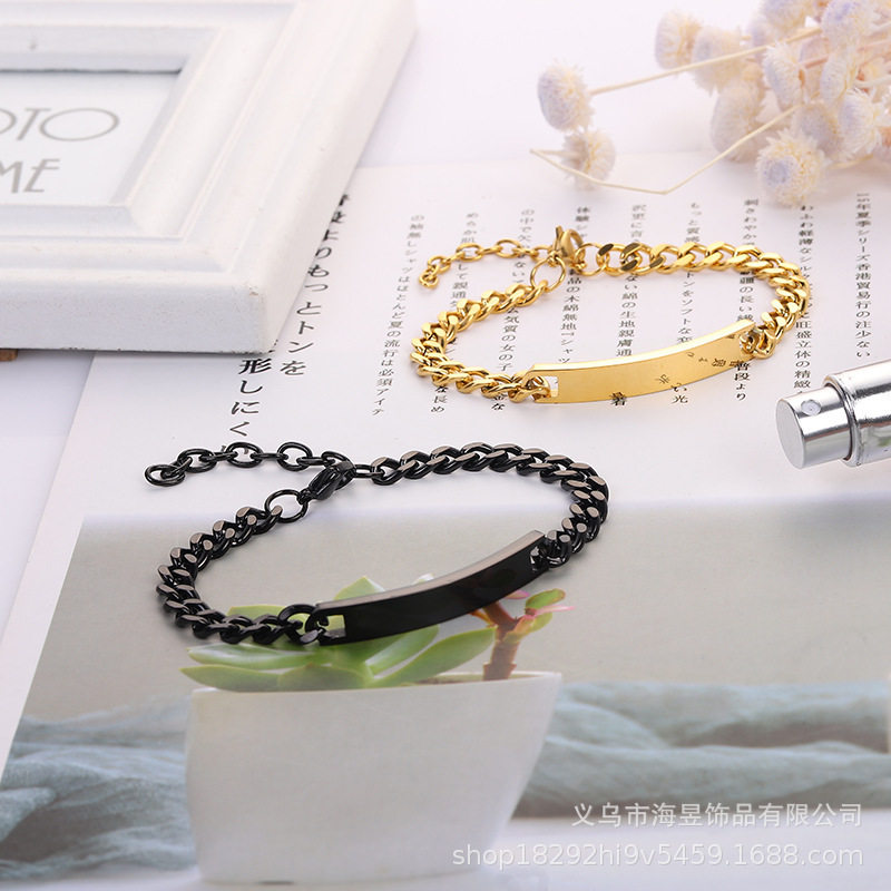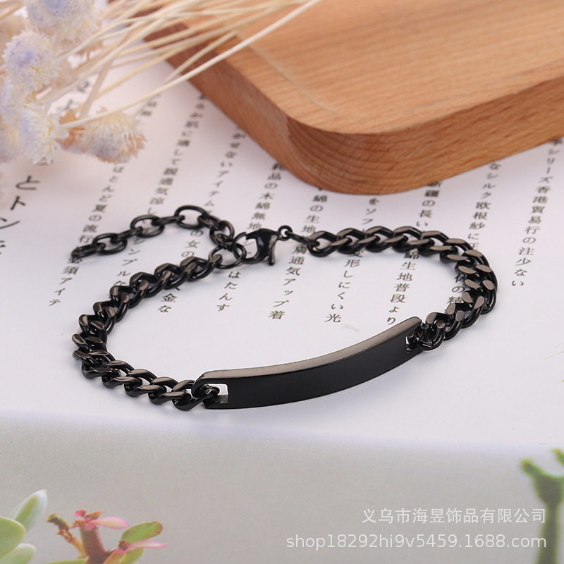 Stainless Steel Bracelet Black DIY Curved Tag Engraving Cross-Border Exclusive for Amazon European and American Style Jewelry Chain Couple