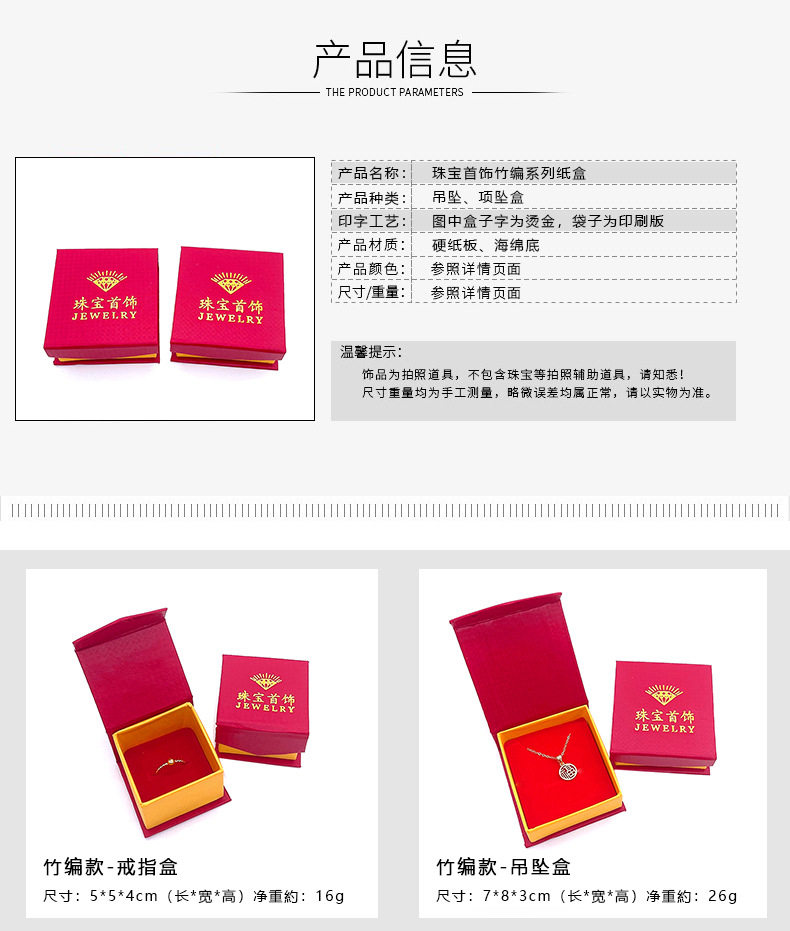 Bamboo-woven pendant box jewelry packaging box pendant box printing ear studs paper box jewelry Jade storage earrings box
