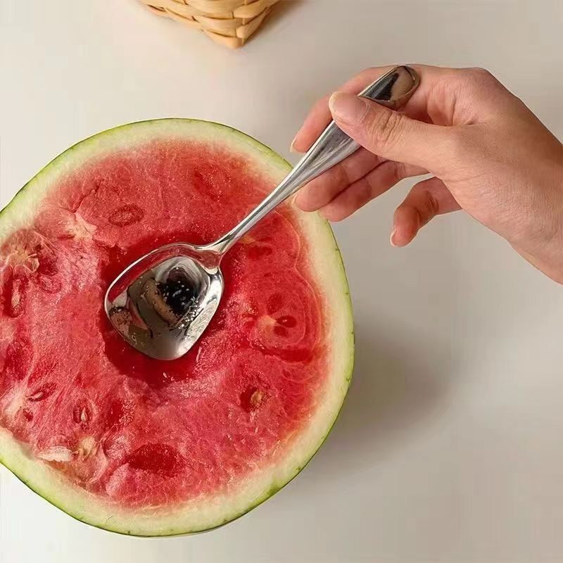 SOURCE stainless steel square head spoon Internet celebrity square ingot spoon eating spoon thickened household spoon Korean flat spoon
