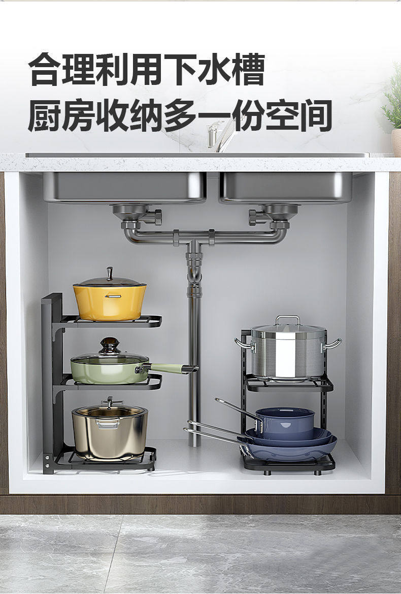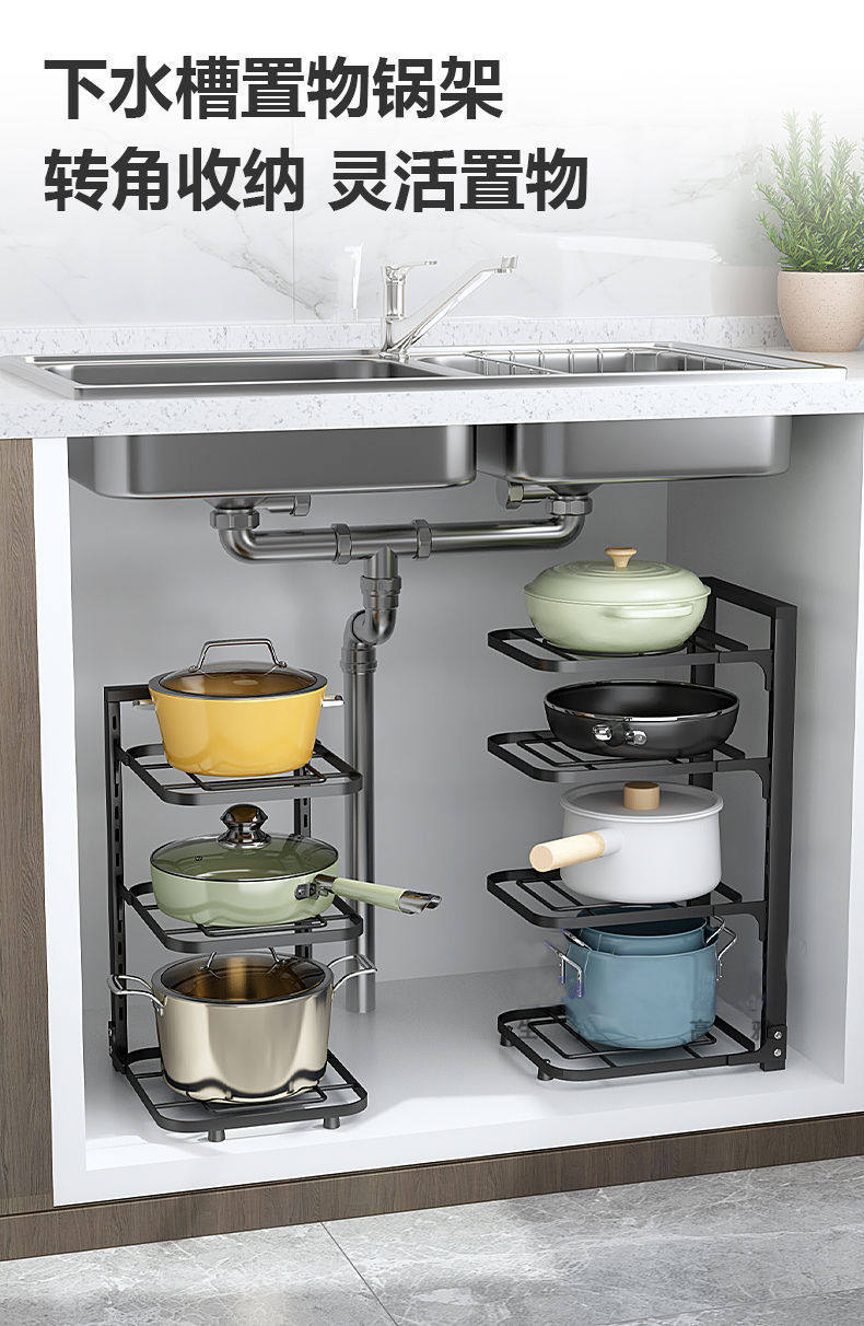 Pot rack dedicated pot storage kitchen stainless steel shelf storage rack sink multi-layer household cabinet layered