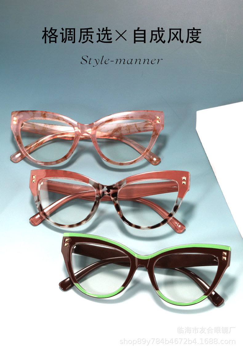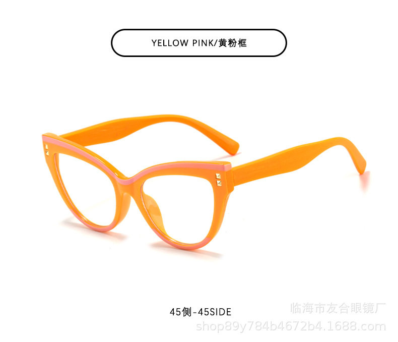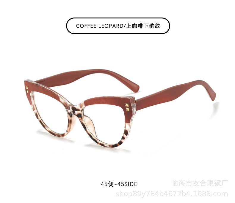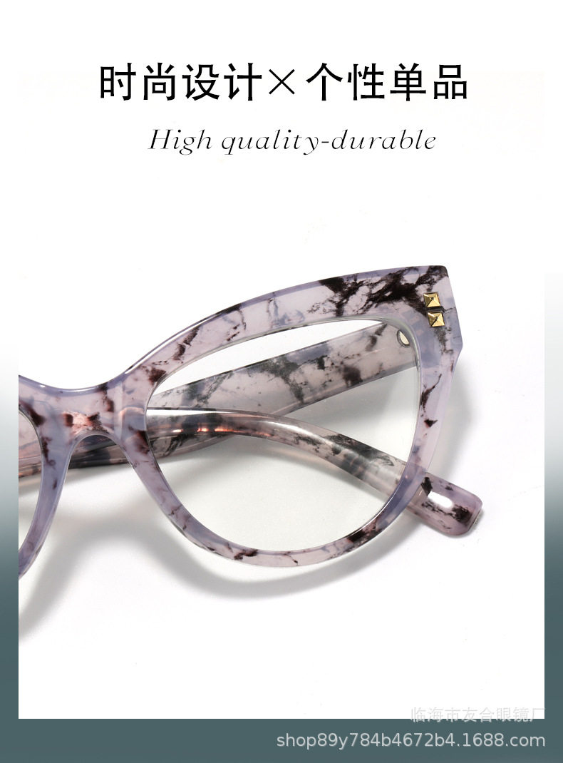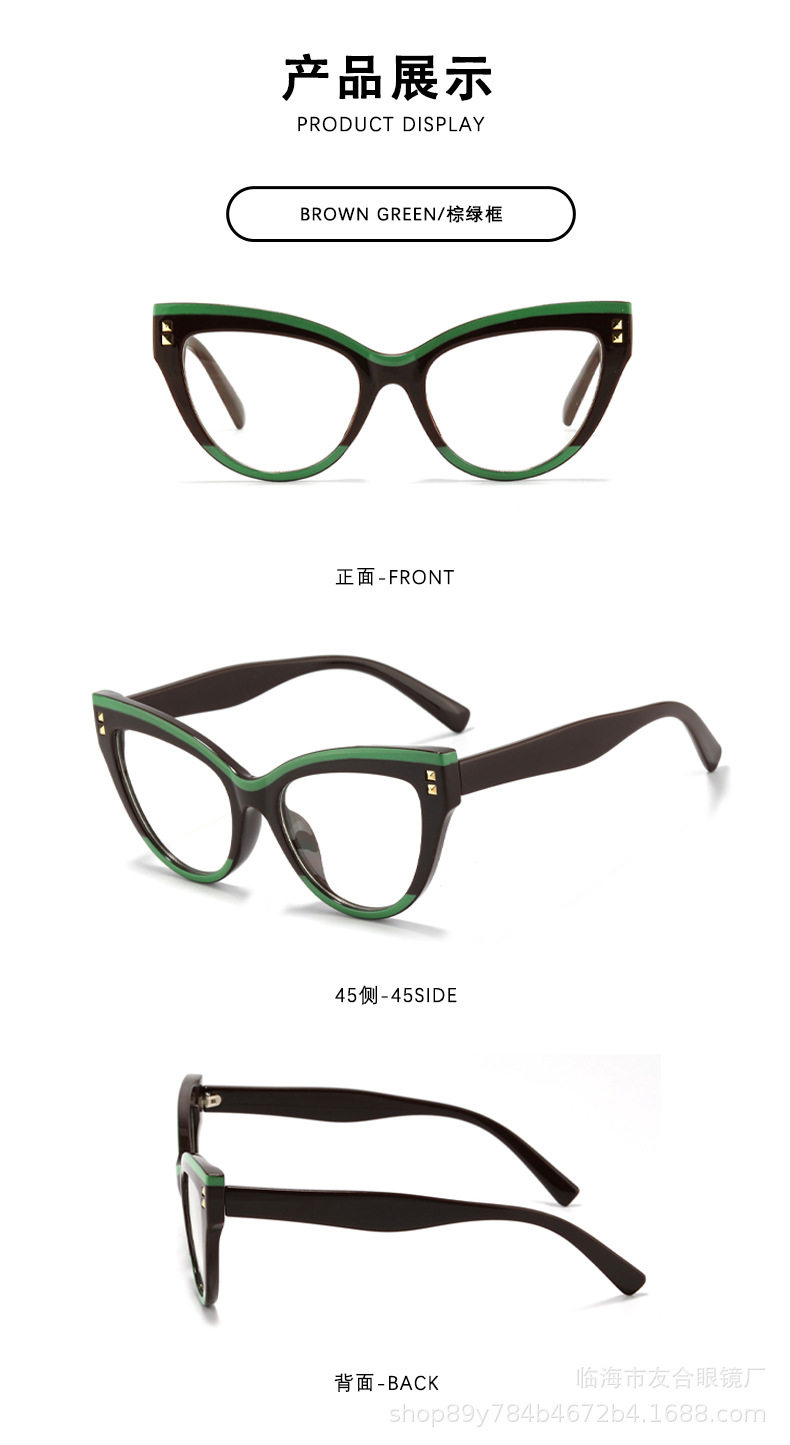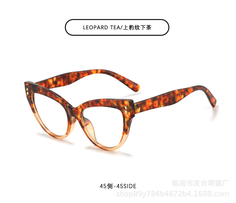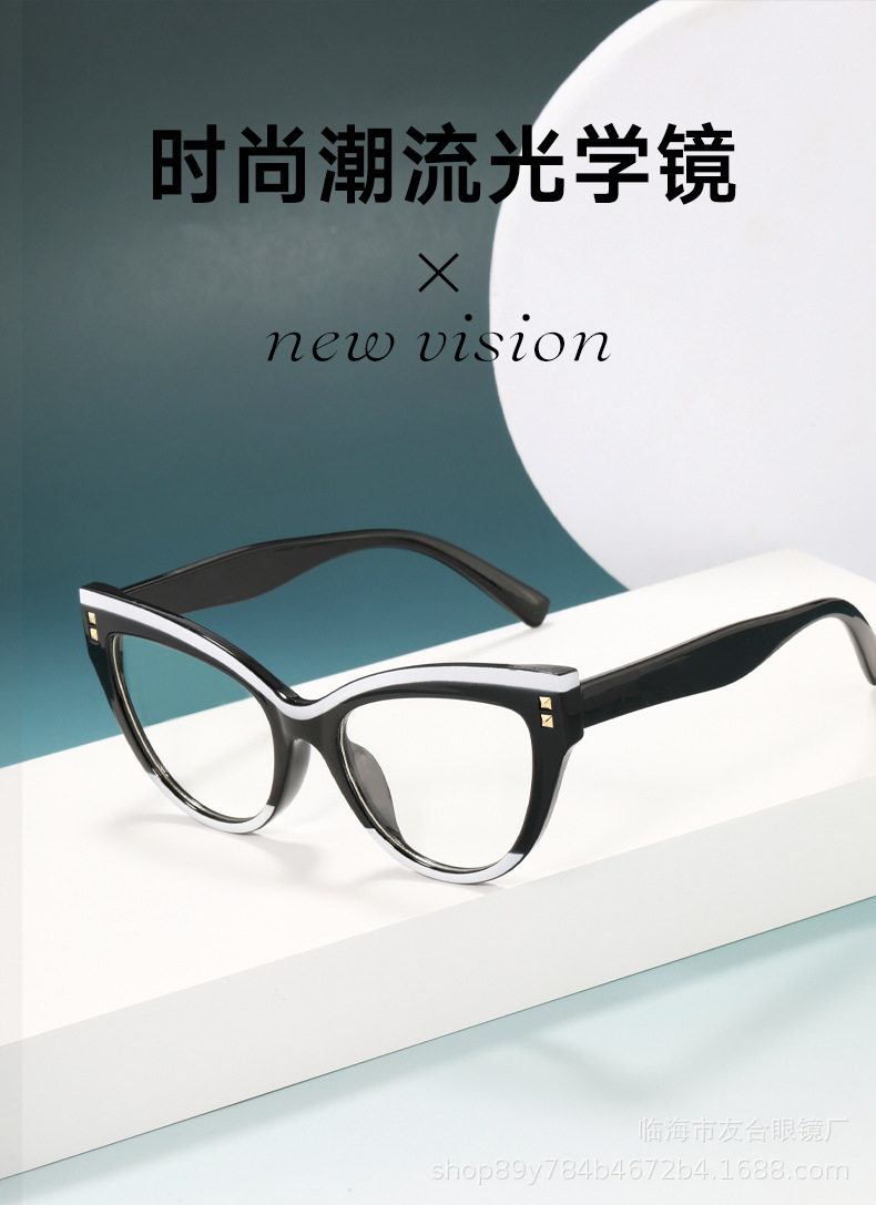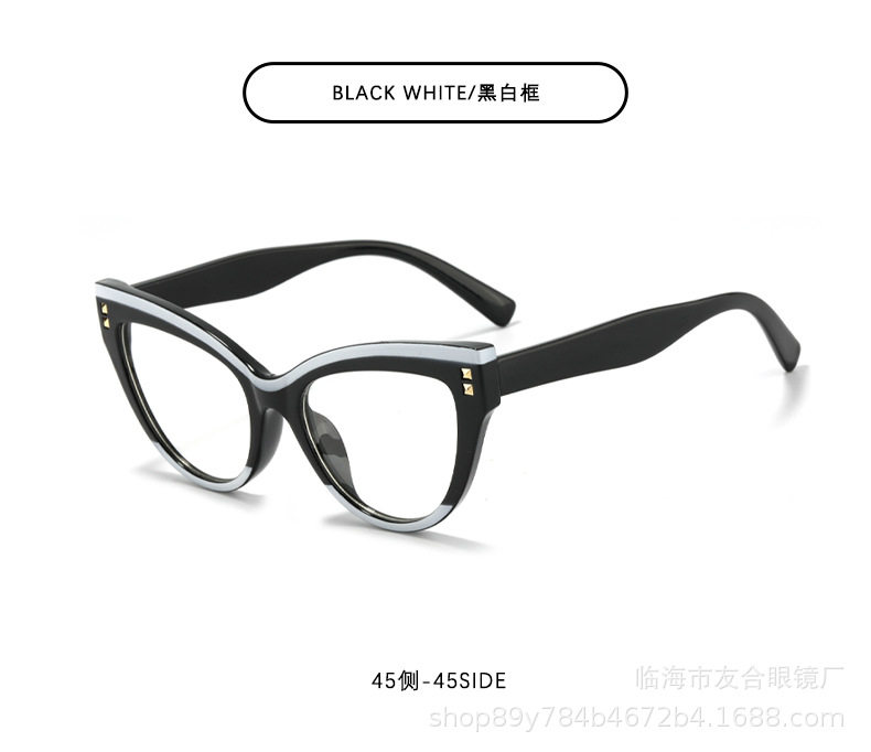 European and American Cat-Eye Rivet Black and White Panda Flat Glasses Frame Anti-Blue Light Lenses Street Style Retro Sunglasses Large Frame