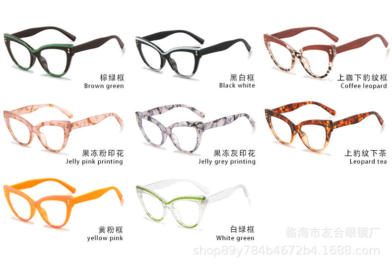 Frame color Brown green frame,Black and white frame,Upper coffee lower leopard print frame,Jelly powder printing,Leopard print tea,Yellow pink frame,White and Green frame