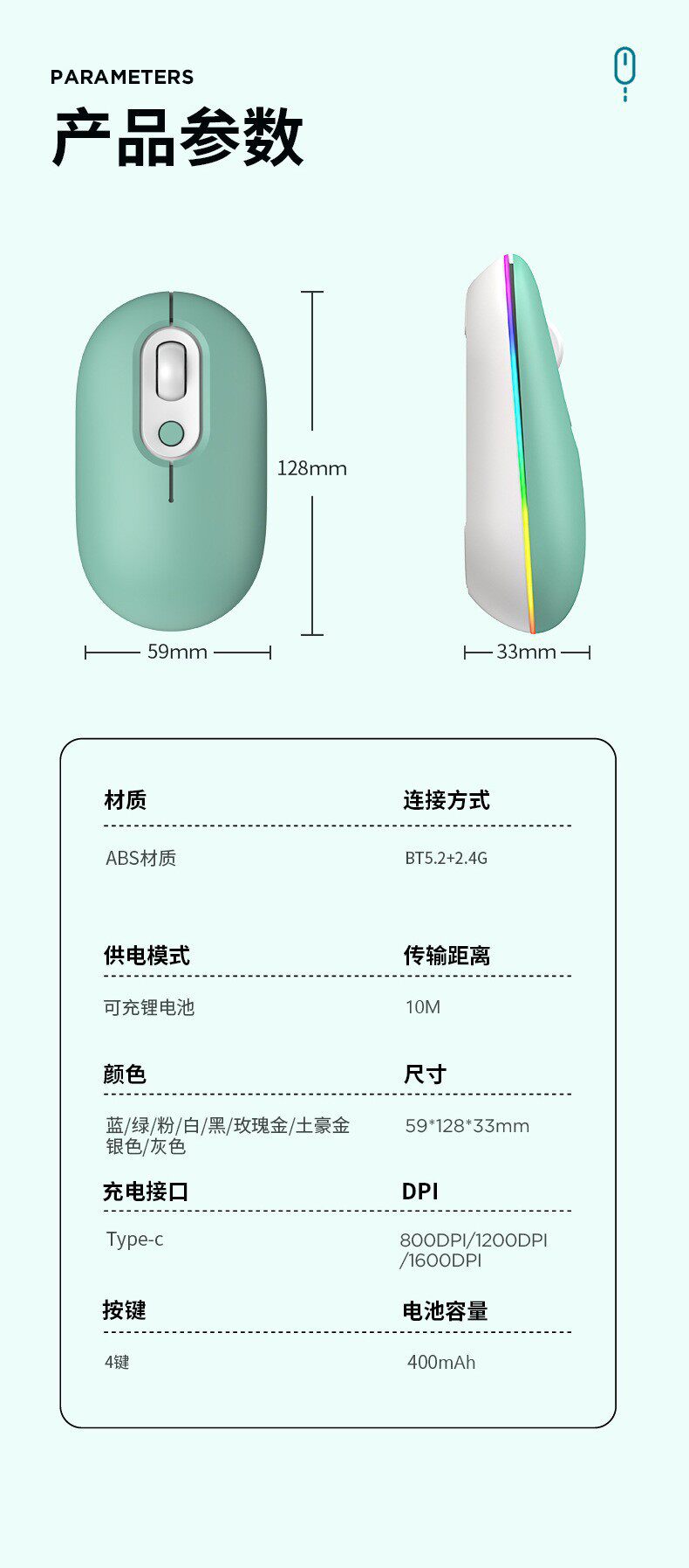 | Color | 2.4g black★★★Battery type,2.4g white★★★Battery type,2.4g blue★★★Battery type,2.4g green★★★Battery type,2.4g pink★★★Battery type,2.4g charging★★★Black,2.4g charging★★★White,2.4g charging★★★Blue,2.4g charging★★★Green,2.4g charging★★★Pink,Dual mode★★★Black,Dual mode★★★White,Dual mode★★★Blue,Dual mode★★★Green,Dual mode★★★Powder,Black★★★Dual mode glow,White★★★Dual mode glow,Blue★★★Dual mode glow,Green★★★Dual mode glow,Pink★★★Dual mode glow |