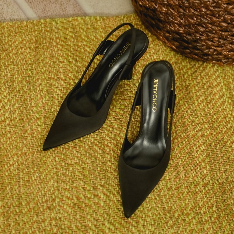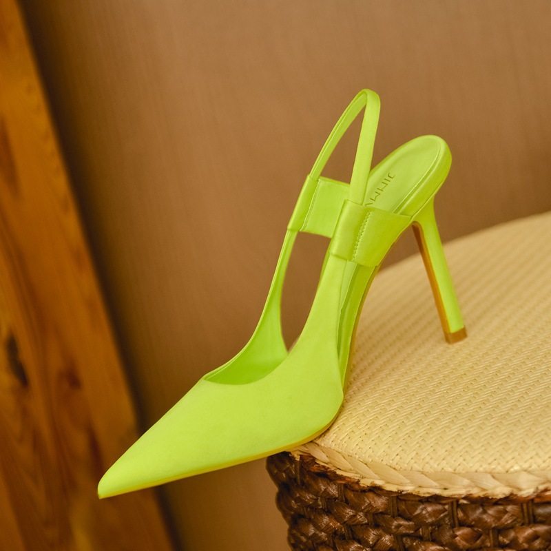 2024 spring new satin blue pointed stiletto heel women's shoes open heel back strap elegant women's sandals Amazon