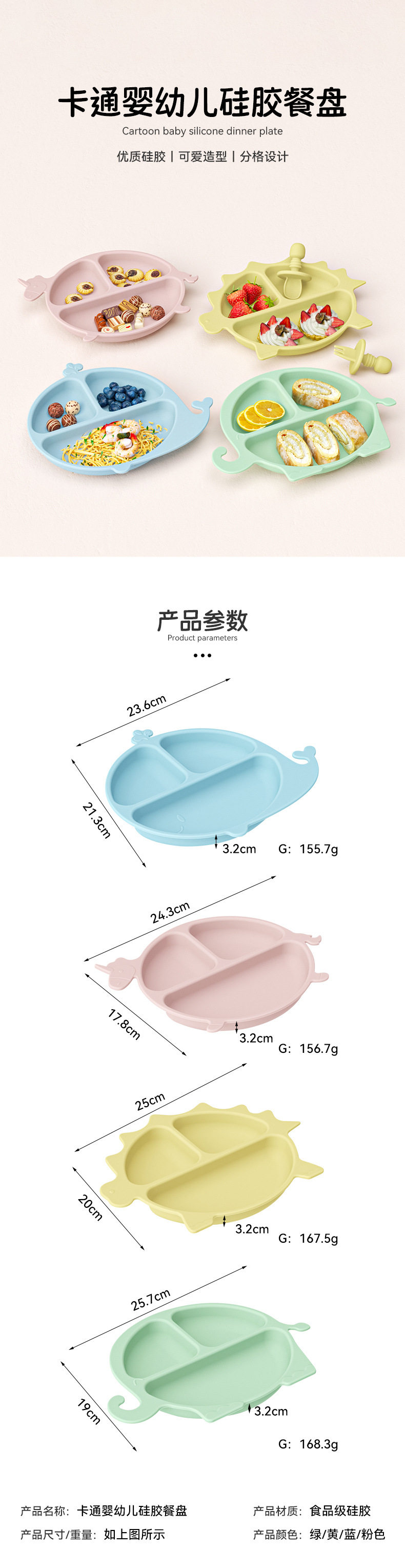 | Color | Yellow 4-piece dinner plate suit,Blue 4-piece dinner plate suit,Pink 4-piece dinner plate suit,Green 4-piece dinner plate suit,Pink dinosaur 4-piece dinner plate set,Unicorn yellow 4-piece serving plate,Elephant green 5-piece plate set,Unicorn yellow 5-piece plate set,Whale blue 5-piece plate set,Dinosaur pink 5-piece plate set,Green dinosaur dinner plate,Blue dinosaur dinner plate,Yellow dinosaur dinner plate,Pink dinosaur dinner plate,Green whale dinner plate,Blue whale dinner plate,Yellow whale dinner plate,Pink whale dinner plate,Unicorn green dinner plate,Unicorn blue dinner plate,Unicorn yellow dinner plate,Unicorn pink dinner plate,Elephant green dinner plate,Elephant blue dinner plate,Elephant yellow dinner plate,Elephant pink dinner plate |