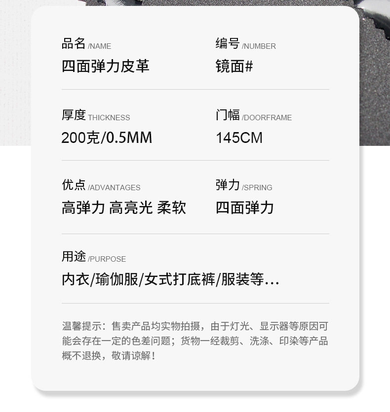 Manufacturers supply four-sided elastic leather mirror bright PU underwear stage clothing clothing leather