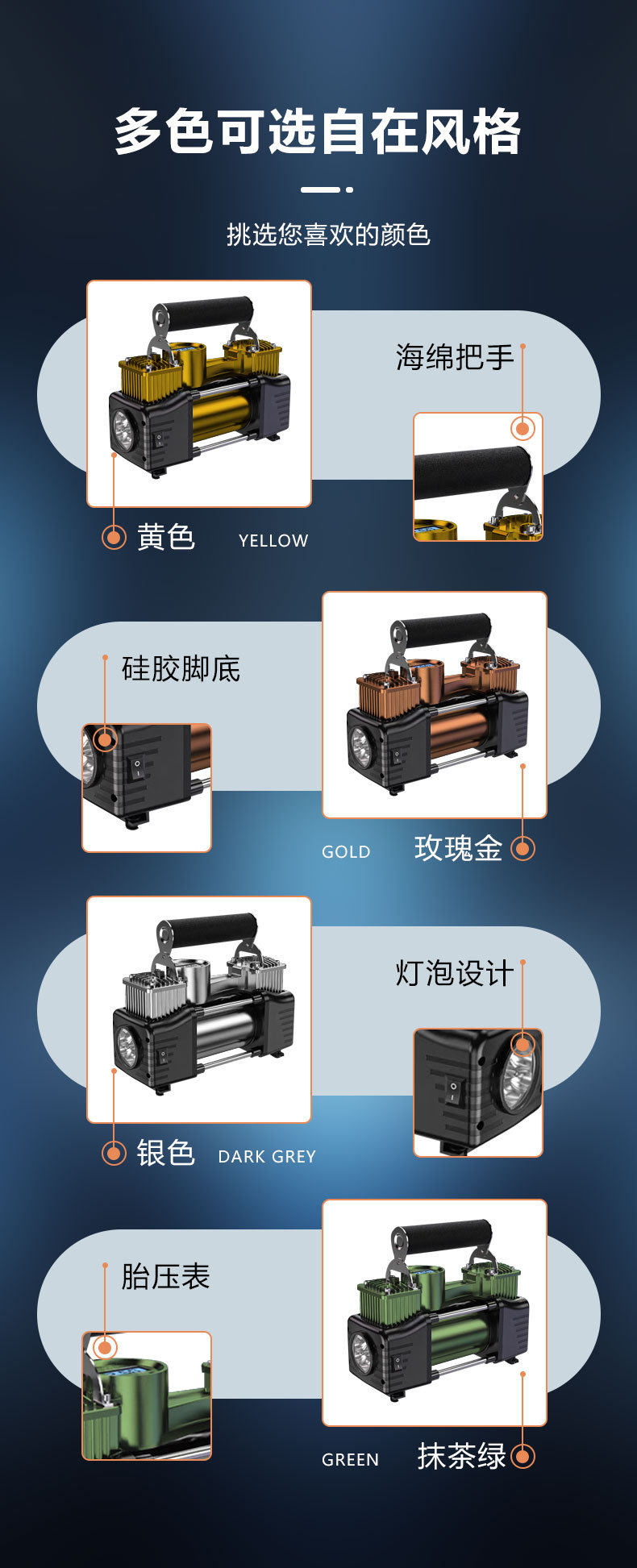 | Additional features | Lighting,Tire pressure gauge |