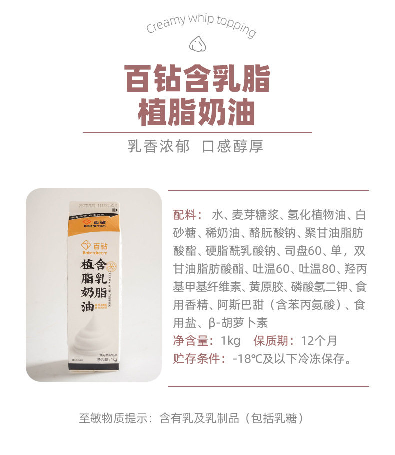 Multi-Diamond milk fat plant cream household baking cake decorating ice cream light cream milk tea shop commercial raw materials