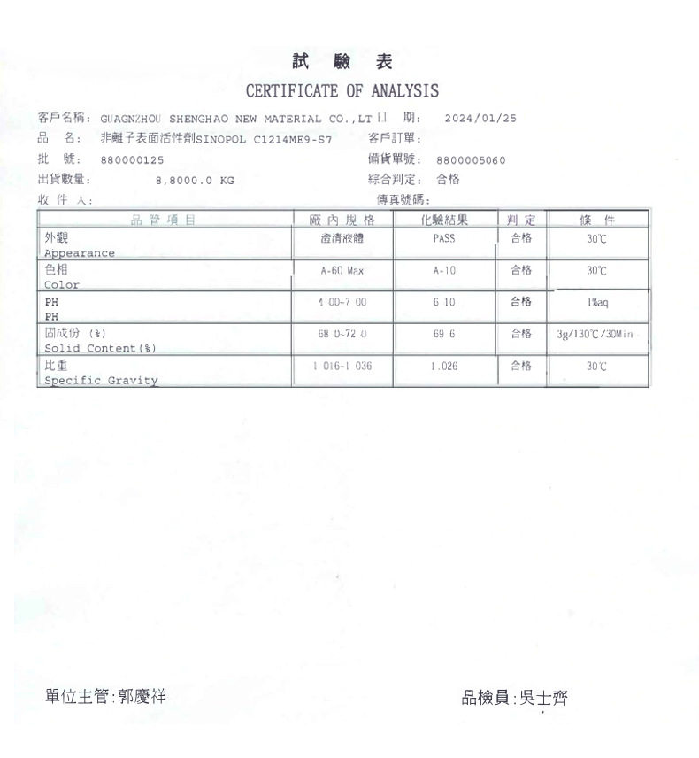 | Purpose and scope of use | Emulsifier, cleaning agent |