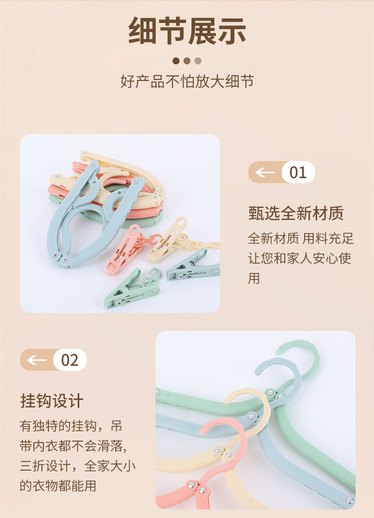 Plastic Folding Clothes Hanger with Clips for Travel, Outdoor Business Trips, Portable Home Use, Student Dormitory Wholesale Drying Rack