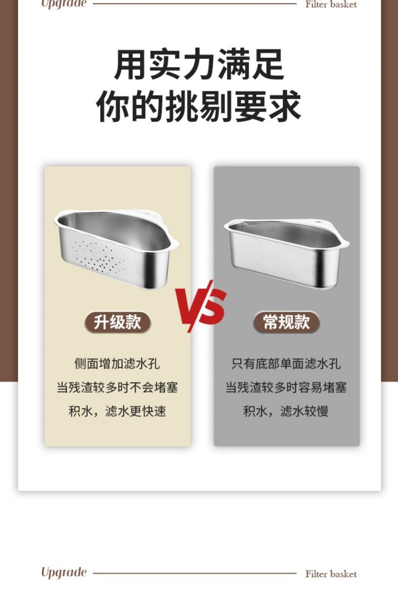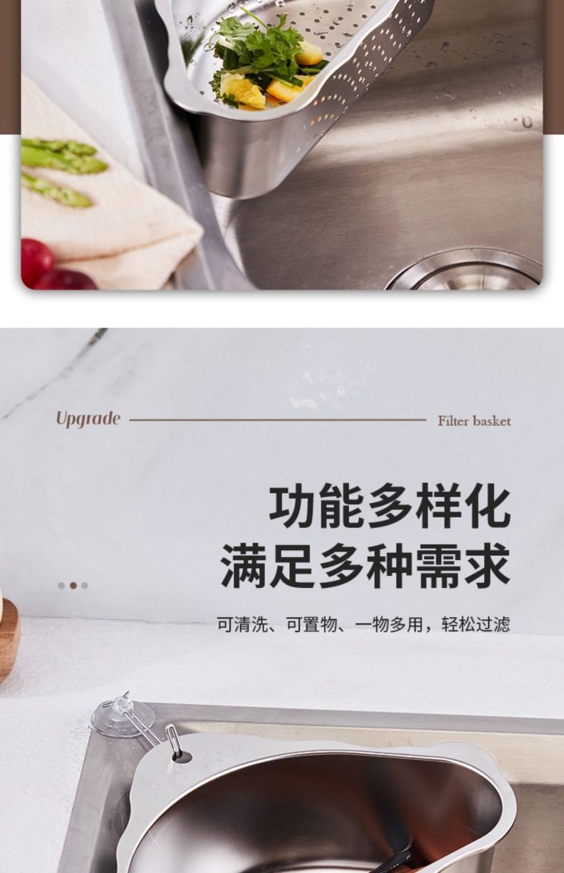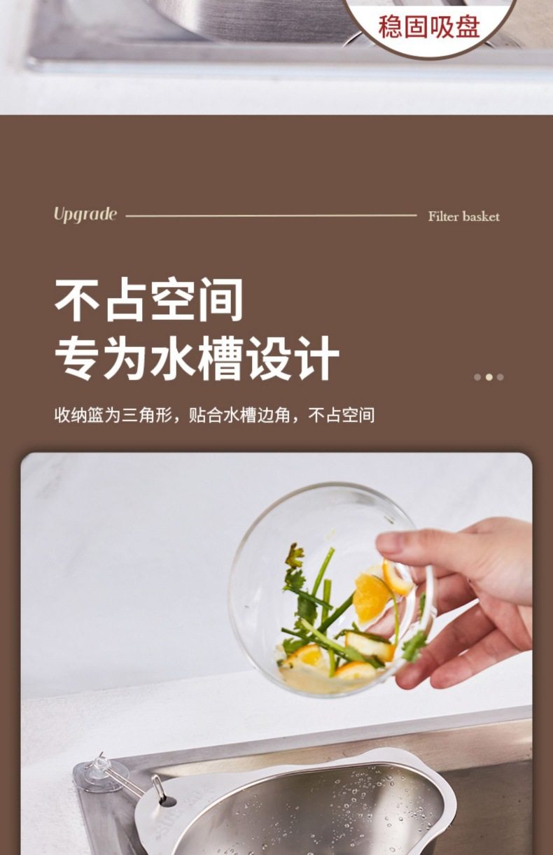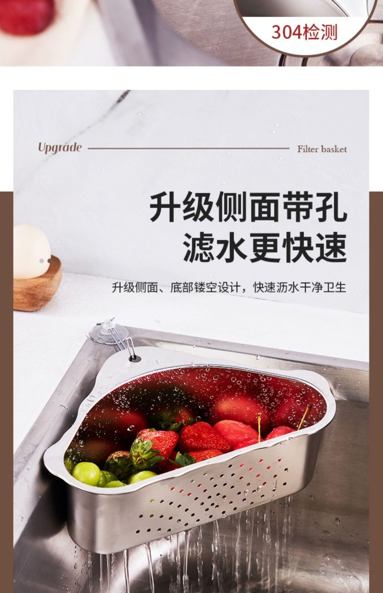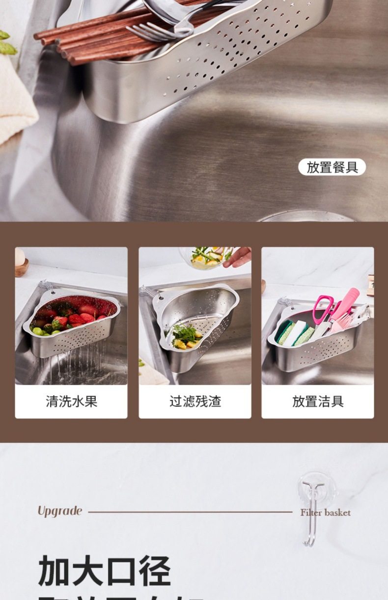 Stainless Steel Sink Drain Basket Kitchen Leftovers Filter Artifact Triangular Sink Net Drain Rack Storage Rack