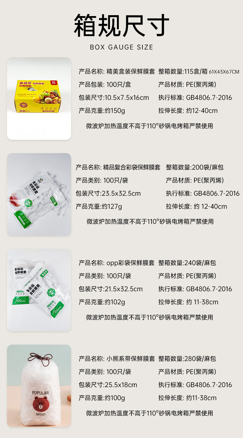 Disposable plastic wrap cover household thickened PE food grade fresh-keeping bowl cover tear-free fresh-keeping cover factory wholesale