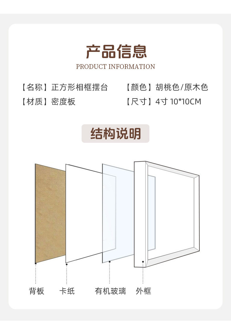 | Frame size | Square, 4 inches (10 * 10cm) |