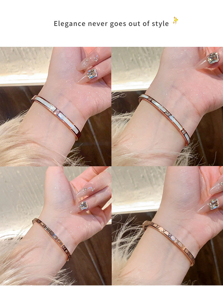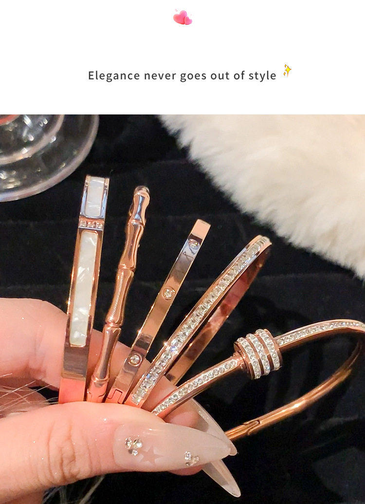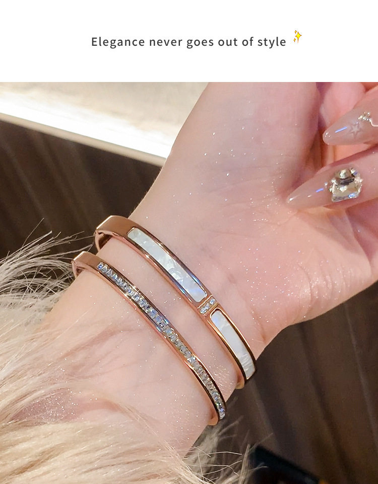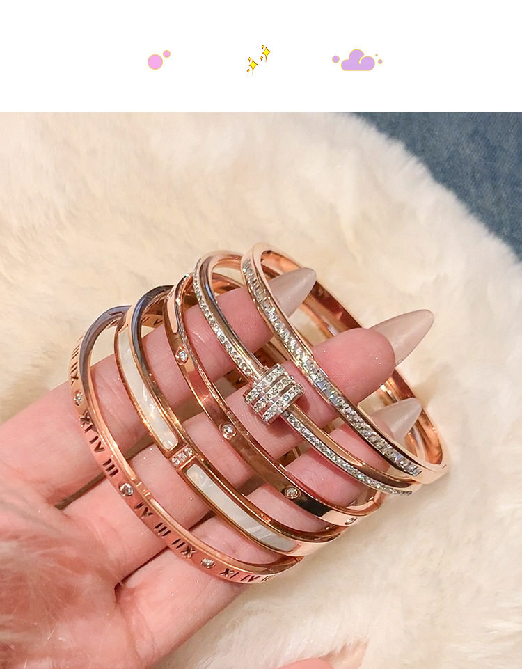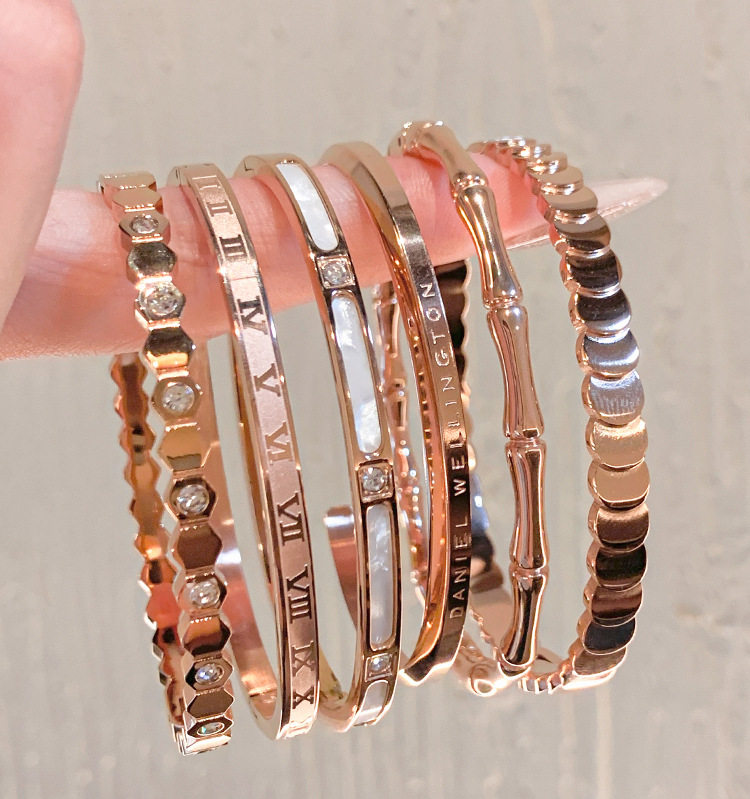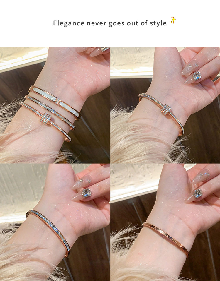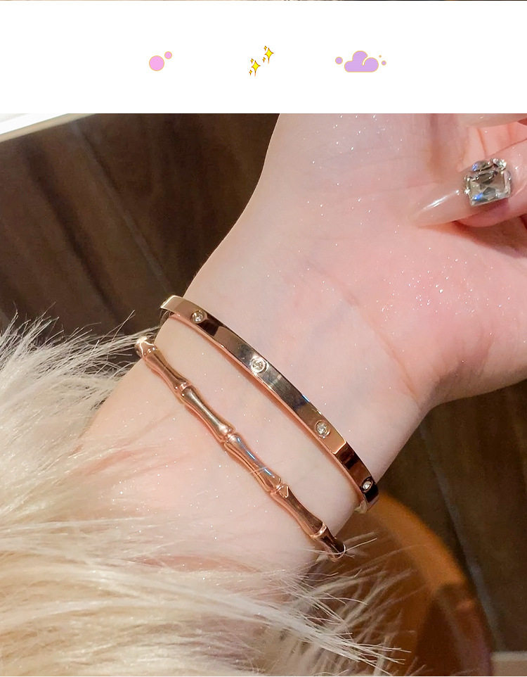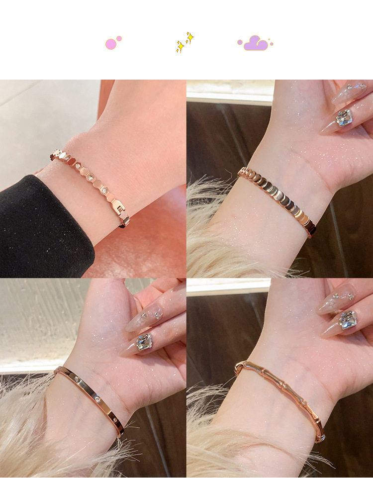 Rose gold titanium steel bracelet women's high-grade bracelet light luxury niche zircon bracelet plain ring bracelet jewelry