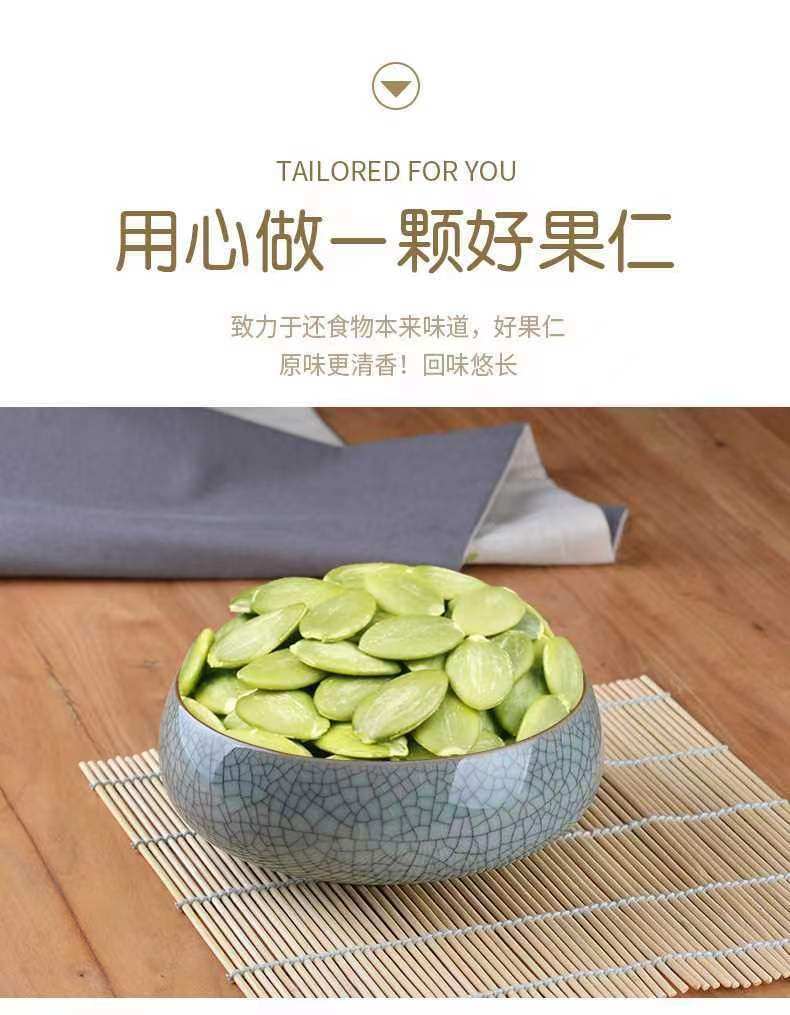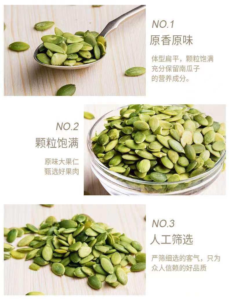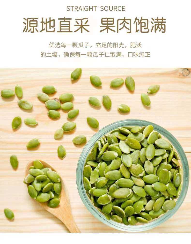 | Packaging specifications | Pumpkin seeds 250g (net weight 150g) * 2 cans,Special price impulse] 1 can of raw pumpkin seeds, a total of 250g,Pumpkin seeds 250g (net weight 150g) * 4 cans,Pumpkin seeds 250g (net weight 150g)*8 cans,Original flavor cooked - 4 cans of pumpkin seeds, 1000g in total,Original flavor cooked - 1 can of pumpkin seeds, a total of 250g,Original flavor cooked - 2 cans of pumpkin seeds, a total of 500g,Original flavor cooked [selected] 1 bag of pumpkin seeds, a total of 250g,Original Ripe [Selected] 2 bags of pumpkin seeds, a total of 500g,[Drop shipping] Contact customer service for more discounts,[Large quantity discounts] Contact customer service for more discounts |