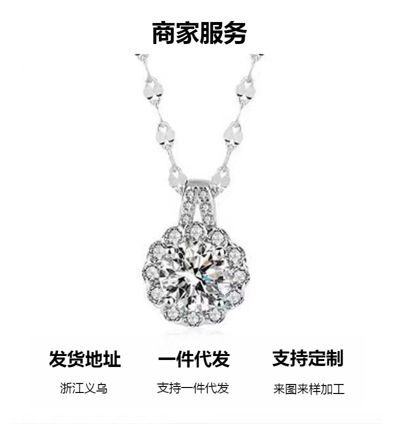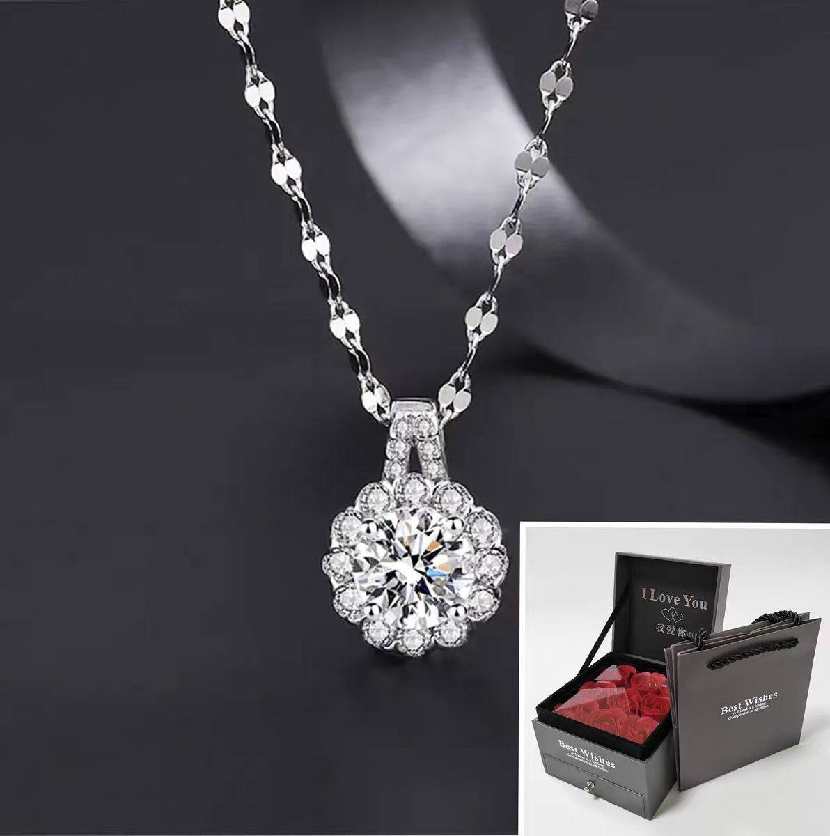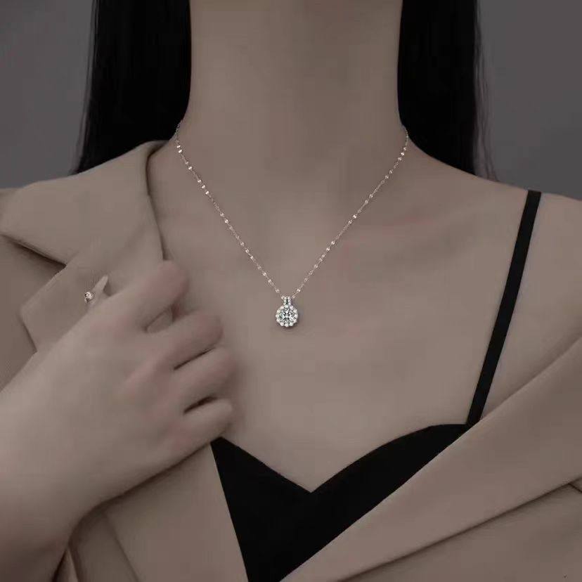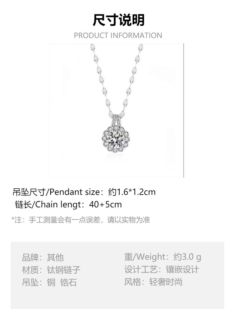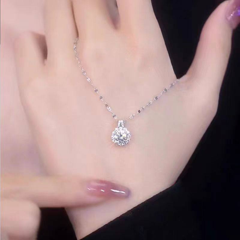 Titanium Steel Tiktok Hot-Selling Moissanite Chain Necklace, Light Luxury, High-End Fashion, Versatile, Elegant Lace Pendant Collarbone Necklace