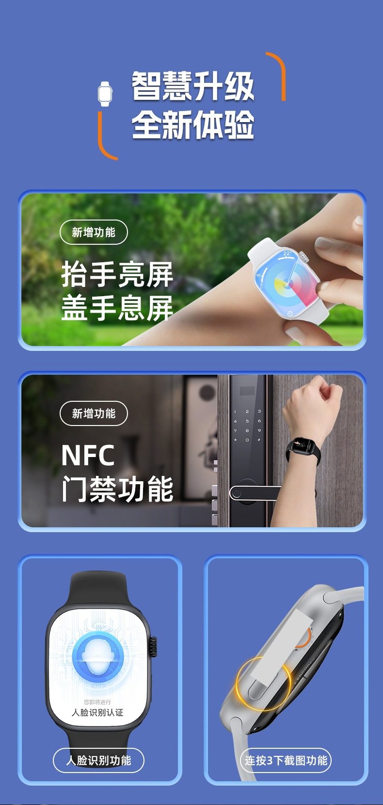 | Function | Take photos,Step counting,Heart rate monitoring,Blood pressure measurement,Social entertainment,Nfc function,Smart reminder,Sleep monitoring,Blood oxygen detection |