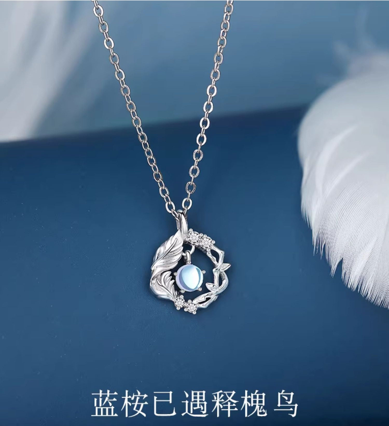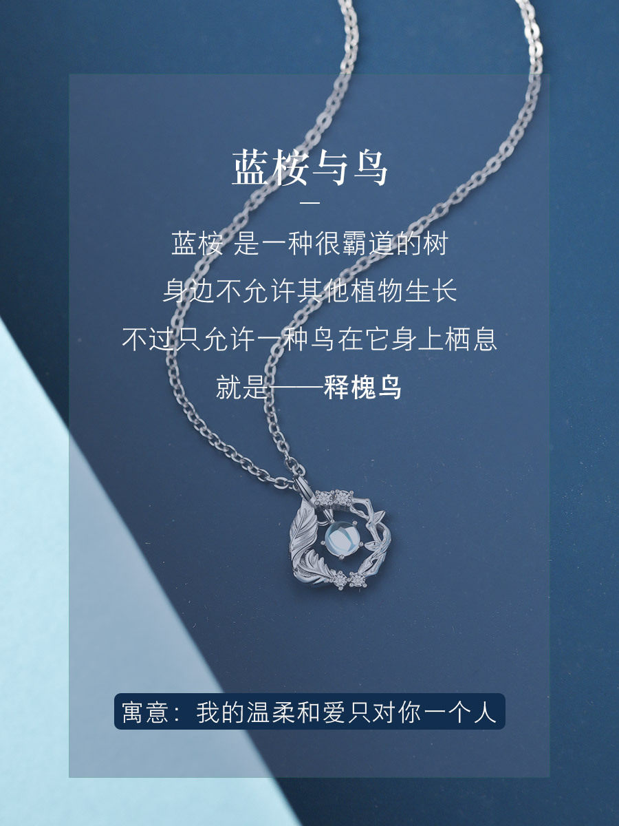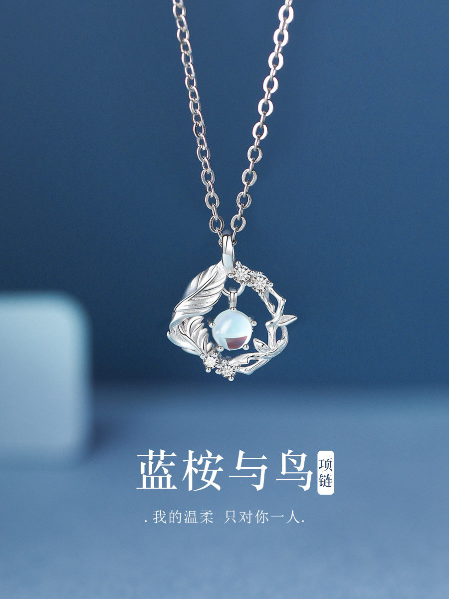 Blue eucalyptus and bird necklace women's all-match high-grade light luxury niche design fashion ins style temperament clavicle chain wholesale