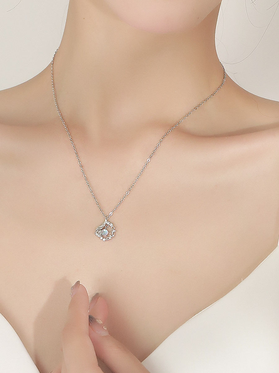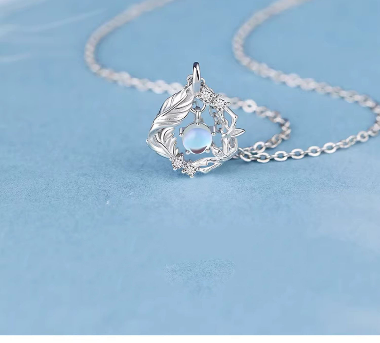 | Color | Eucalyptus and Bird Necklace (White Gold) |