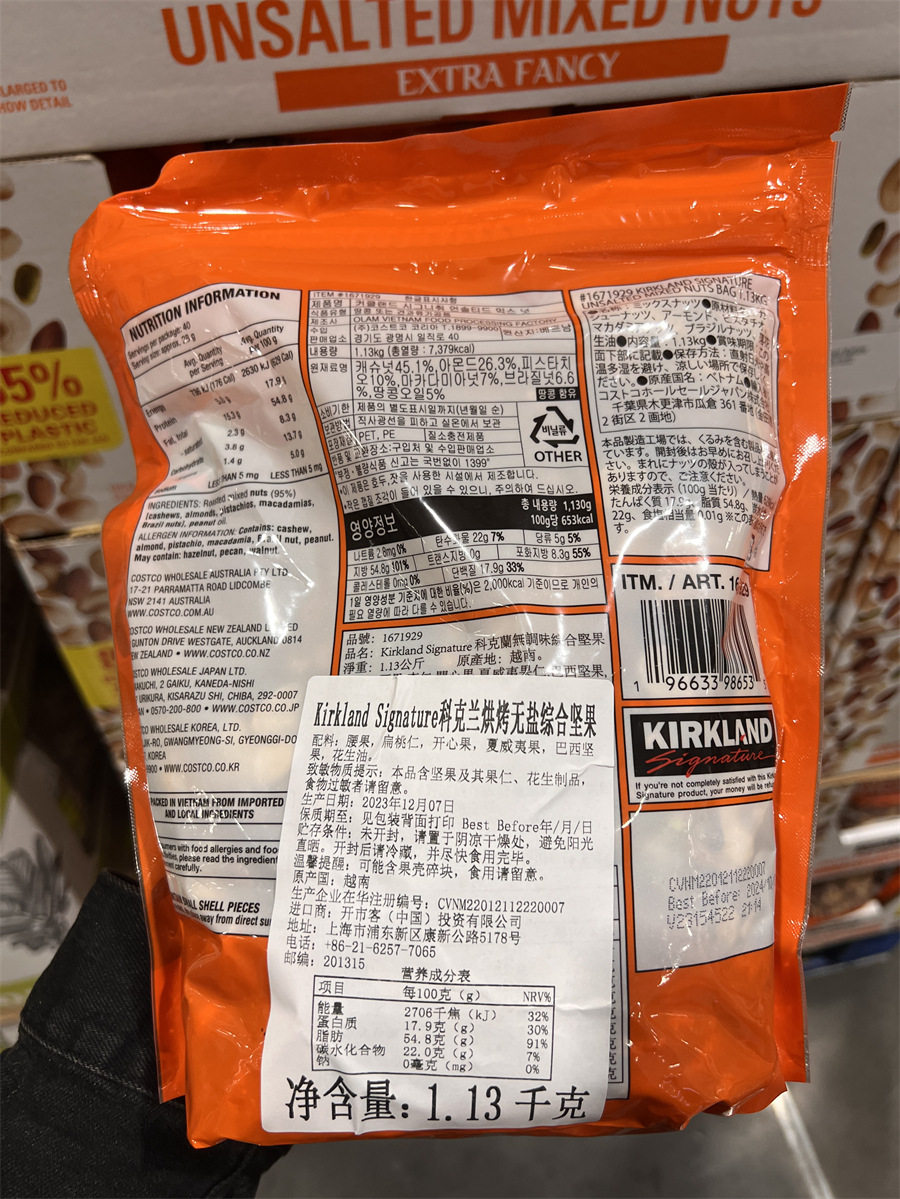 US imported kirkland corland mixed nuts with salt/salt-free happy Bigen cashew macadamia nuts