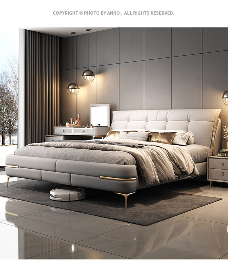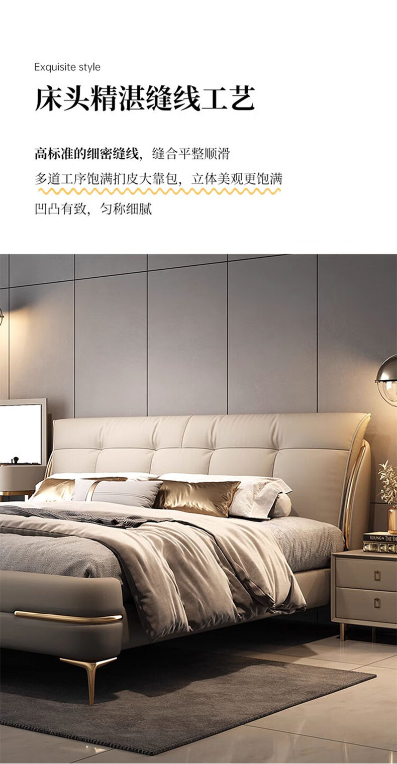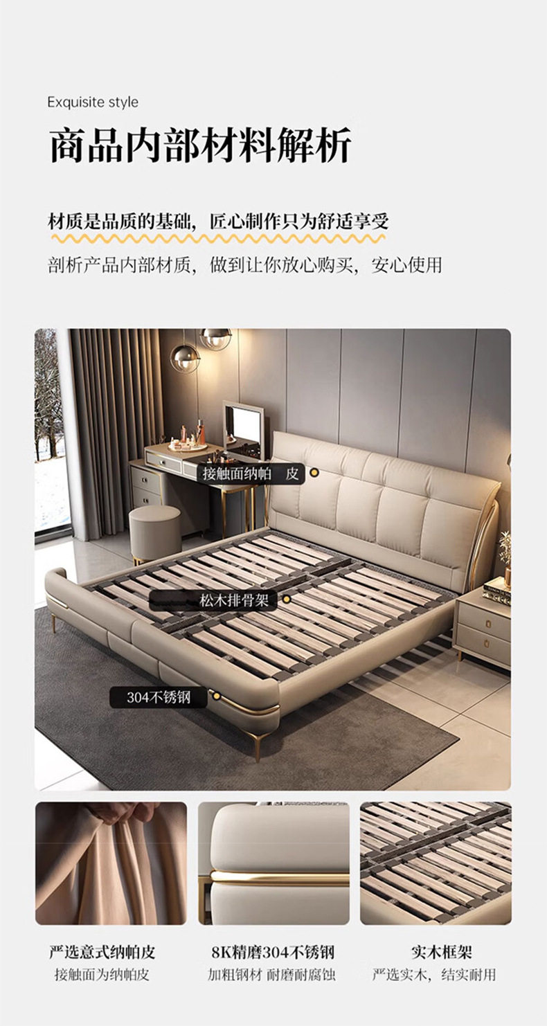Double bed genuine leather solid wood sponge soft cushion wedding bed storage leather bed 1.8m bedroom Napa leather multifunctional bed