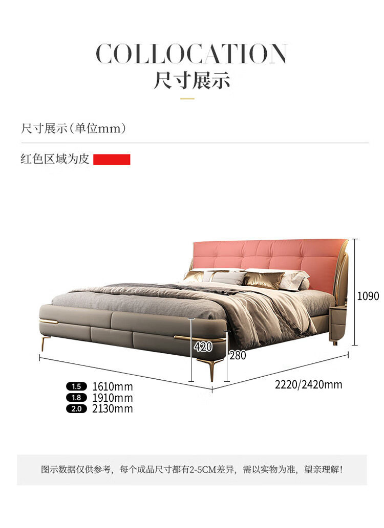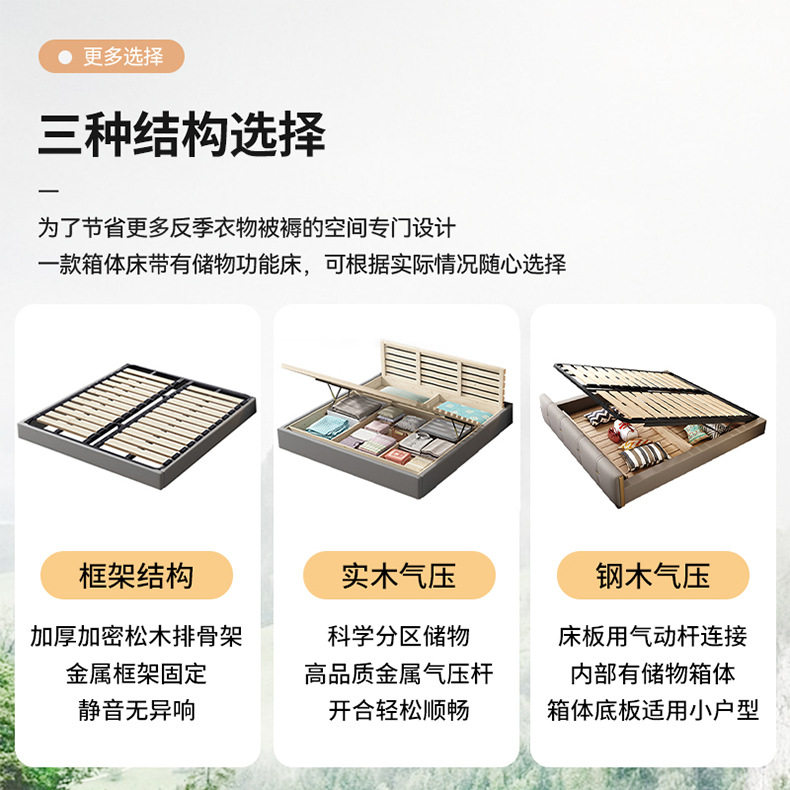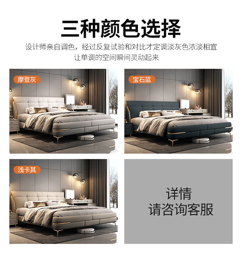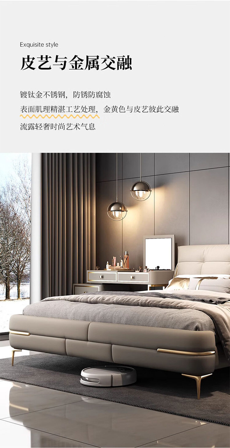 Double bed genuine leather solid wood sponge soft cushion wedding bed storage leather bed 1.8m bedroom Napa leather multifunctional bed