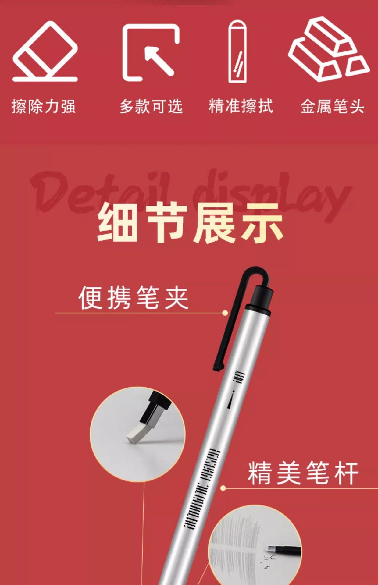 Legendary Road square head round head ultra-fine pen type art sketch highlight detail automatic eraser pen automatic eraser