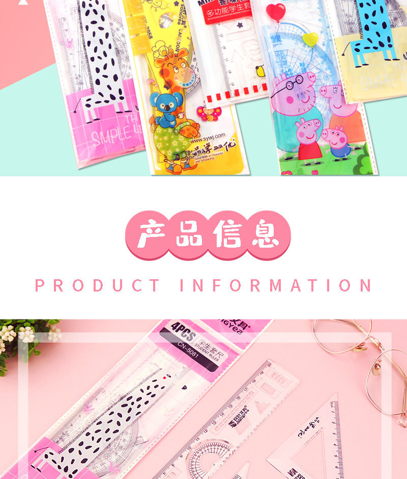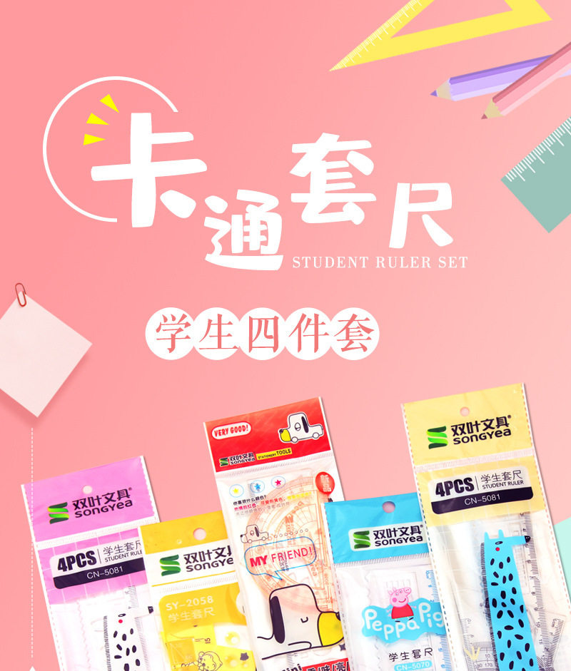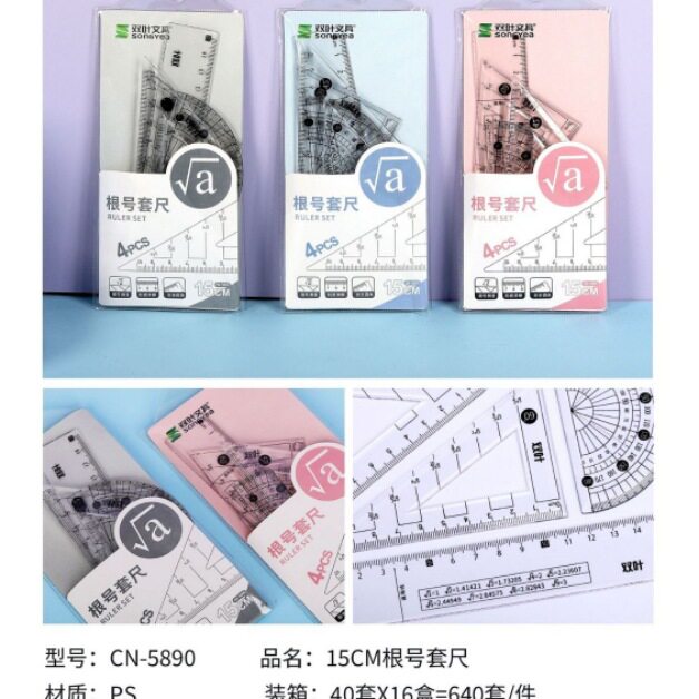 | Specification | 5023/zhuangyuan and no. 1 single pack 4-piece set,5052/single pack of 4 pieces,5033/cartoon single pack 4-piece set,2055/student ruler set single package 4-piece set,5059/cartoon single pack single pack 4 piece set,5056/cartoon single pack single pack 4 piece set,5058/cartoon single pack single pack 4 piece set,5060/cartoon single pack single pack 4-piece set,2056/student ruler set single package 4-piece set,2503/student ruler set single package 4-piece set,2511/student ruler set single package 4-piece set,2510/student ruler set single pack 4-piece set,5102/student ruler set single pack 4-piece set,5053/student ruler set single pack 4-piece set,5026/student ruler set single package 4-piece set,5055/student ruler set single pack 4-piece set,5890/root number ruler set of four,120Q |