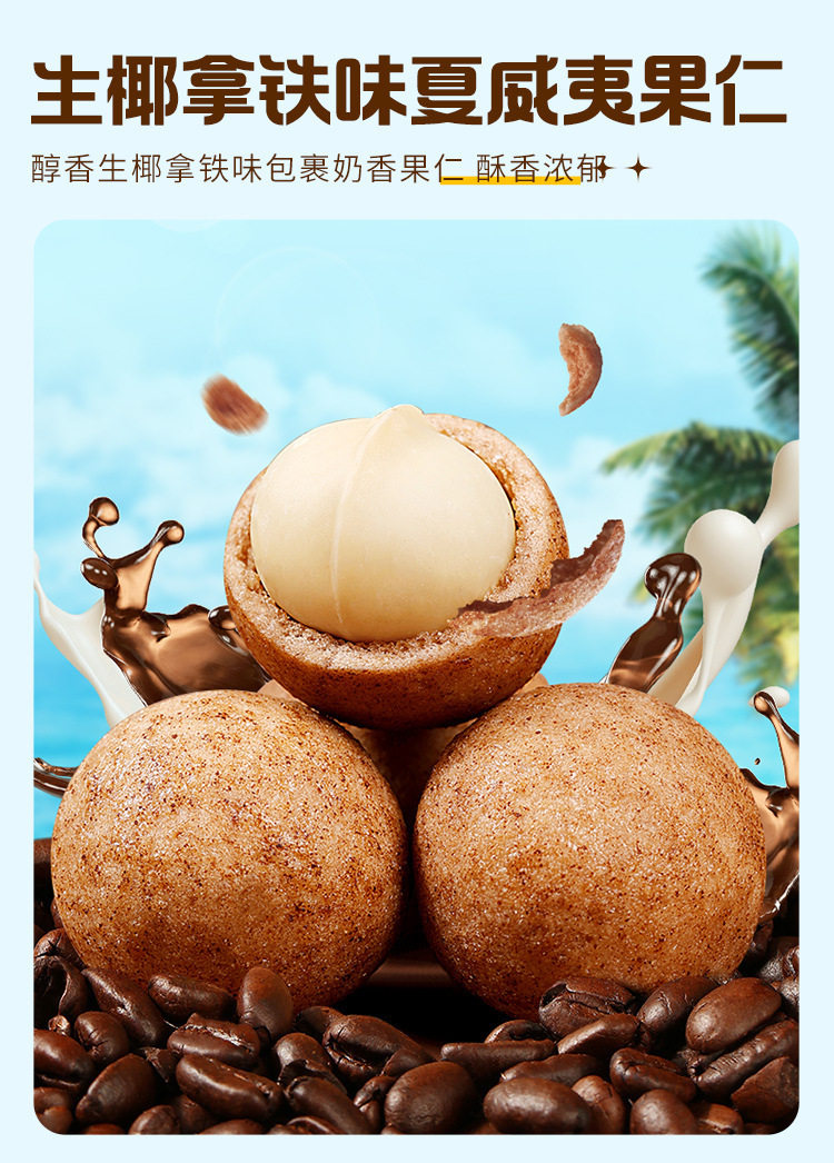 | Packaging specifications | Raw latte flavor Hawaiian nuts 30g,Coconut flavor Hawaiian nuts 30g,Mustard flavor Hawaiian nuts 30g |