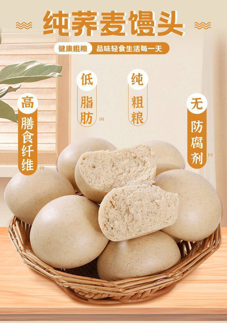 Pure Buckwheat Noodles Steamed Buns Shandong Handmade Whole Grain Buckwheat Noodles Steamed Buns Saccharine-free Low-fat Multigrain Steamed Buns Ready to Eat for Breakfast