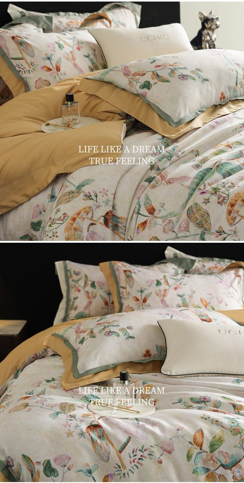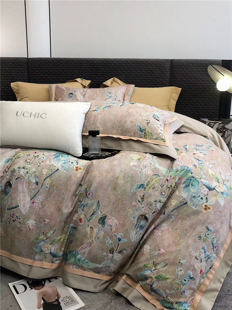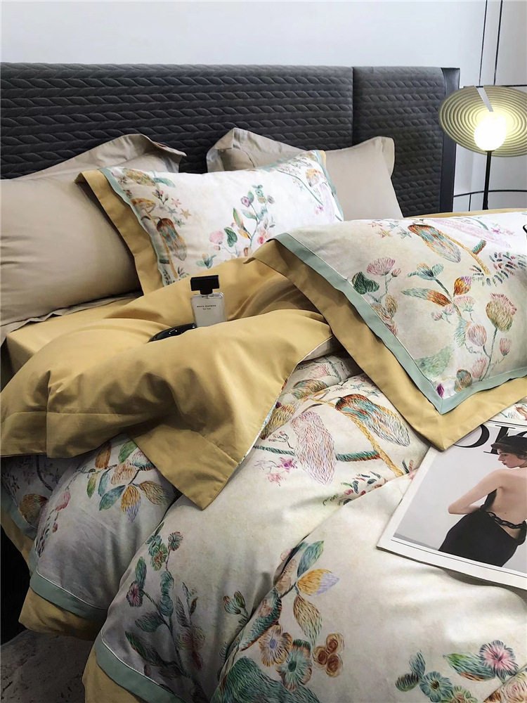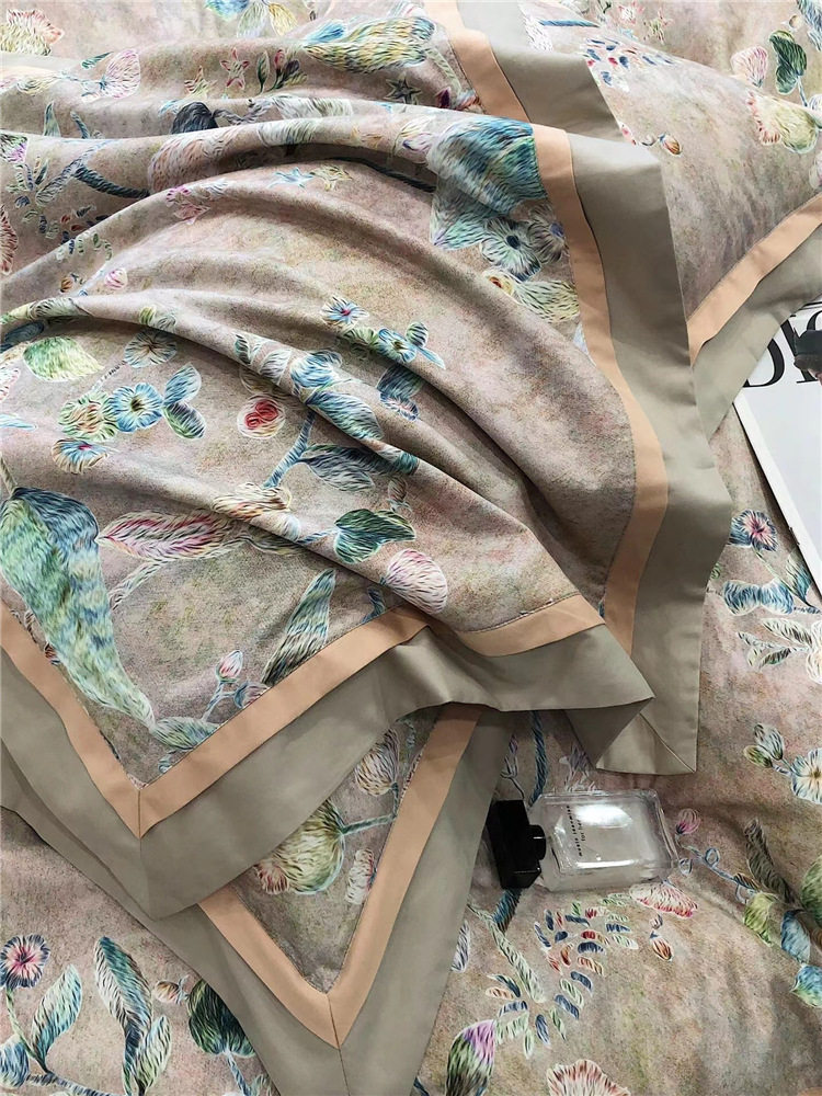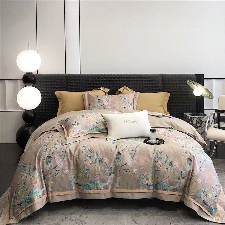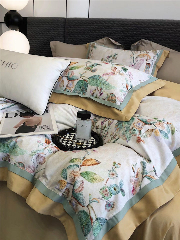 American Style Satin Cotton Four-Piece Set with Colorful Floral Digital Printing Pure Cotton Quilt Cover Bed Sheets Bedding 1.8